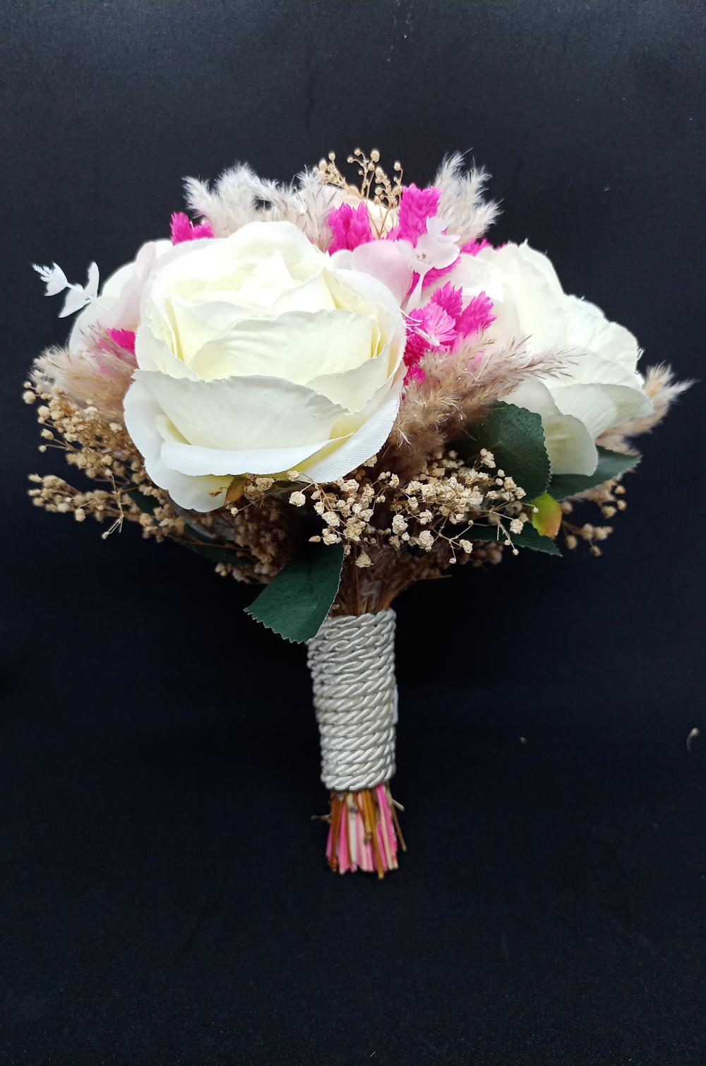 Pembe Cipsolardan Oluşan Beyaz Gelin Buketi.