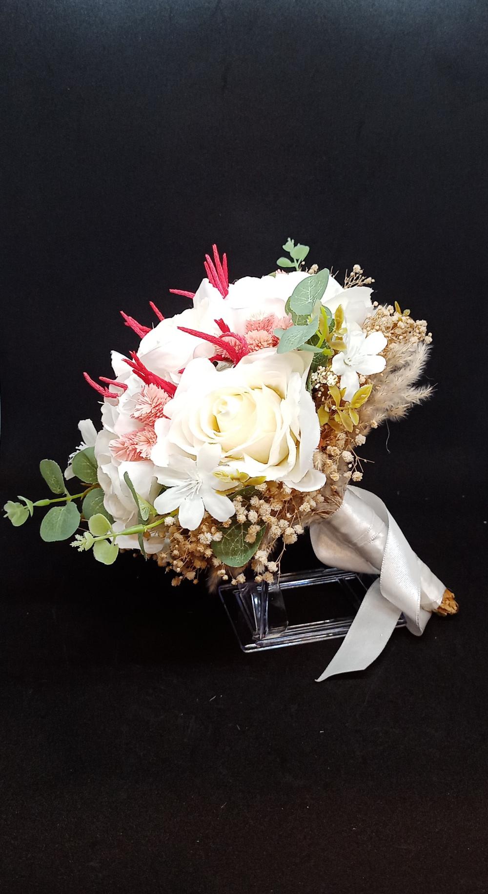 Pembe Detaylı Olan Beyaz Gül Gelin Buketi