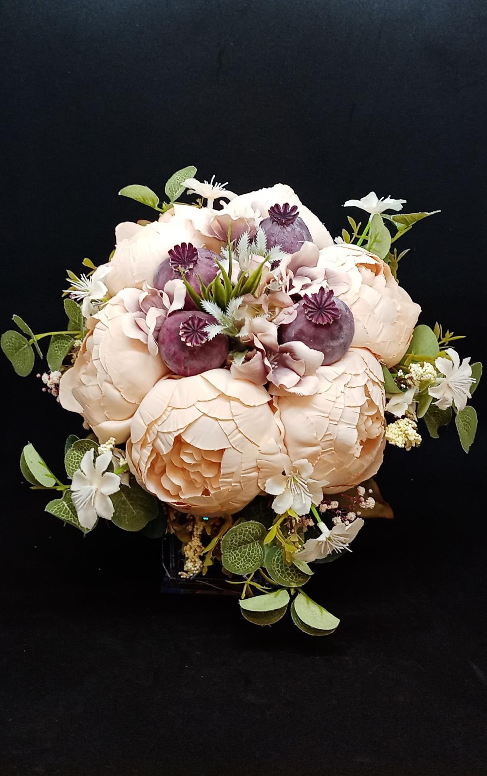 Açık Pembe Tonlarında Şakayık Gelin Buketi
