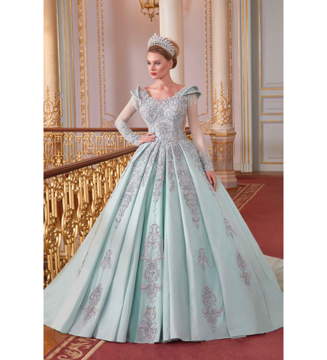Apolet Kol Detaylı Kasnak Dantel İşlemeli Prenses Nişanlık