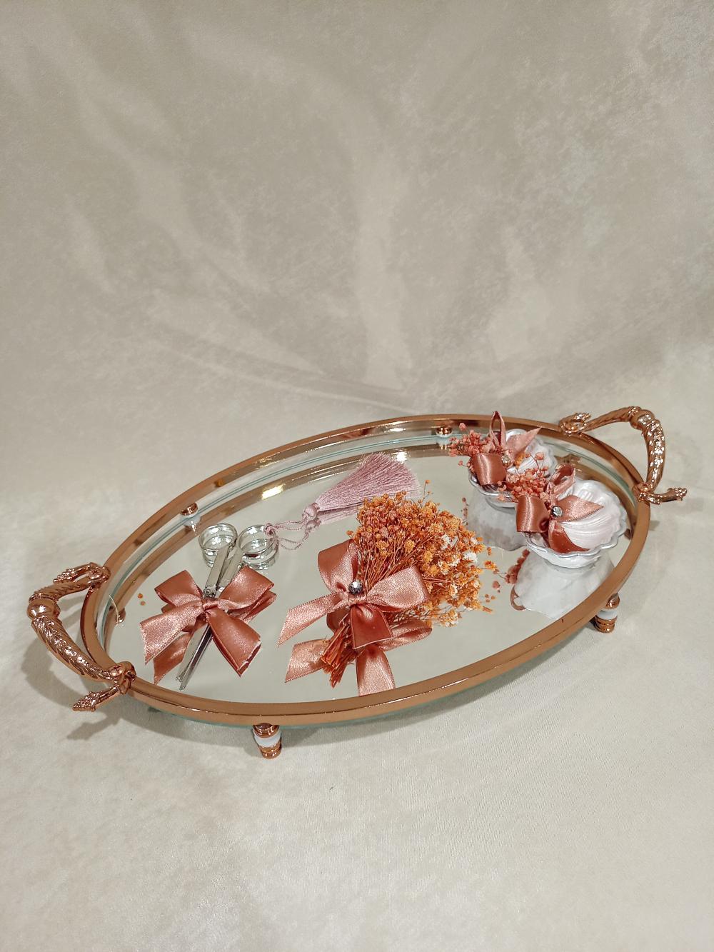 Bakır Tonlarında Ayna Detaylı Söz - Nişan Tepsisi