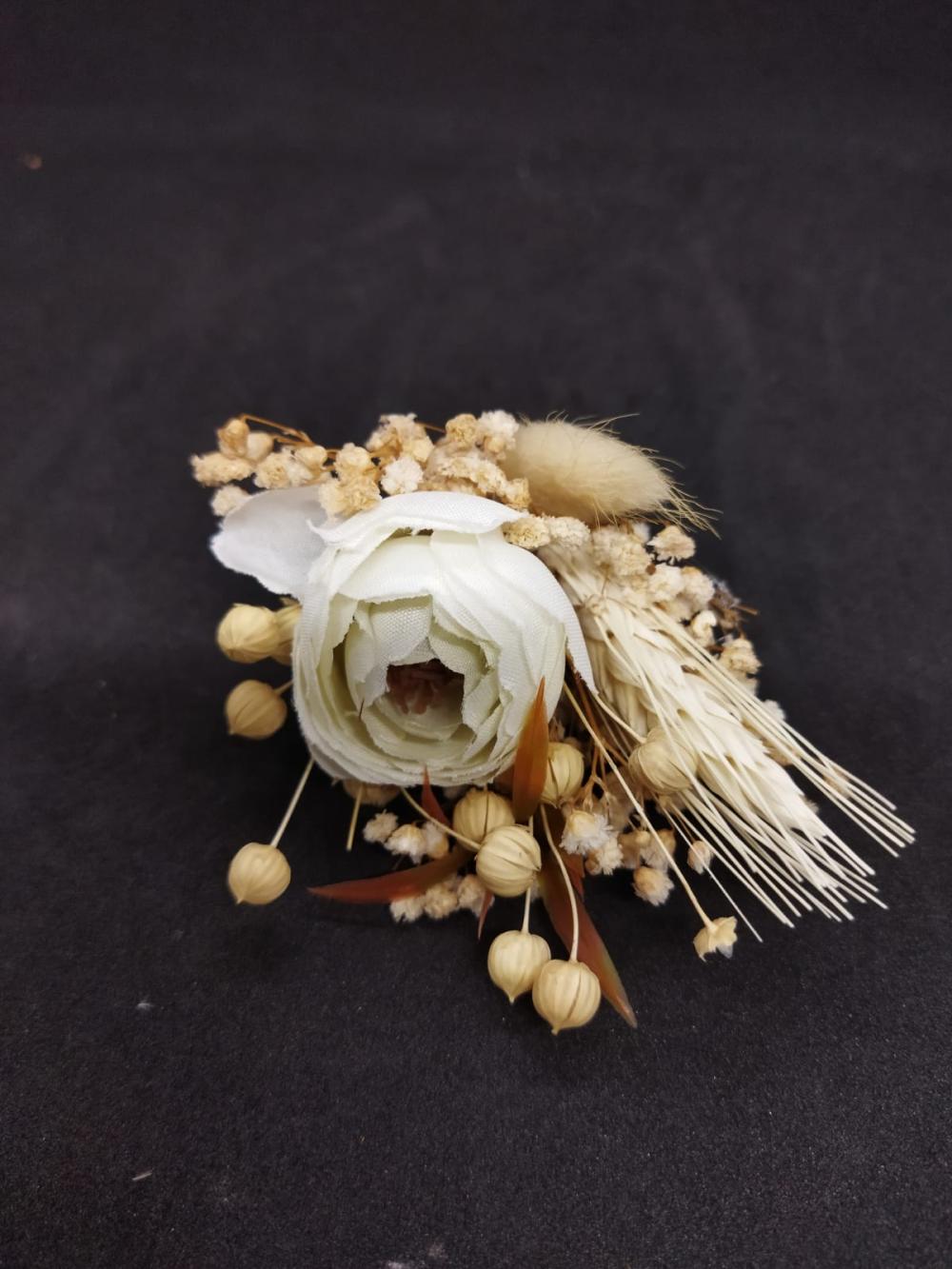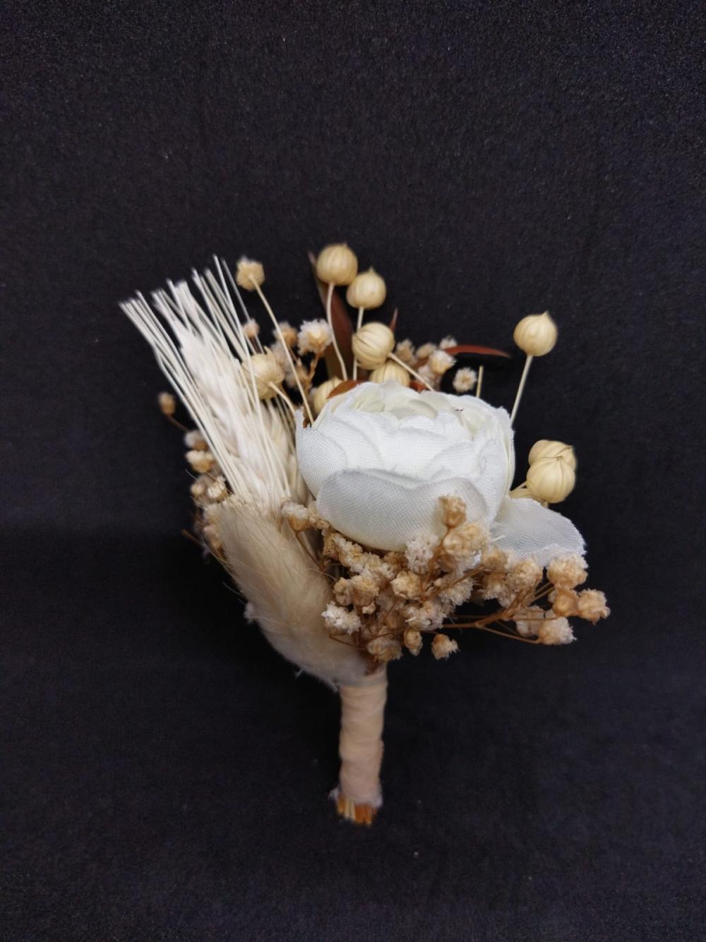 Başak Detayına Sahip Beyaz Şakayık Damat Yaka Çiçeği