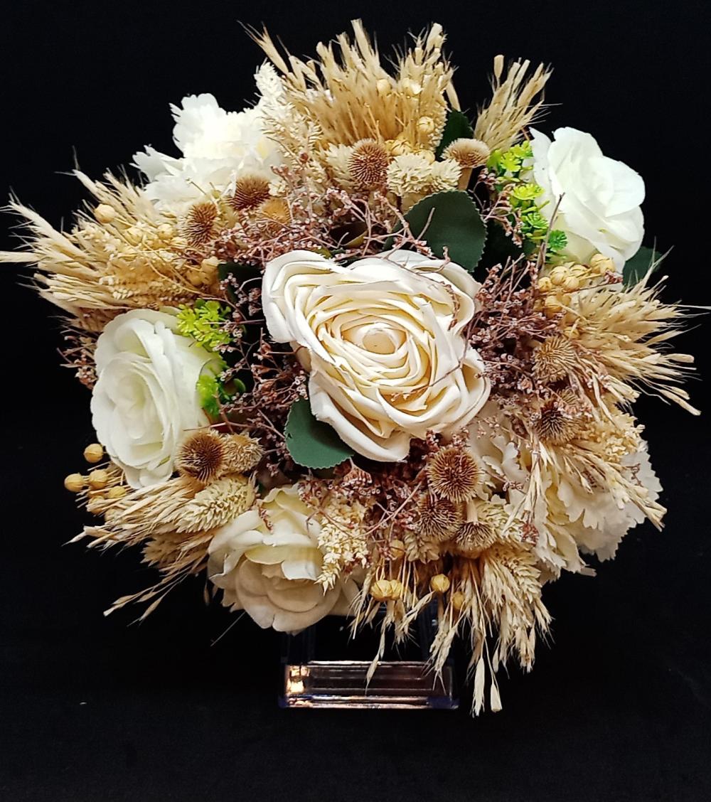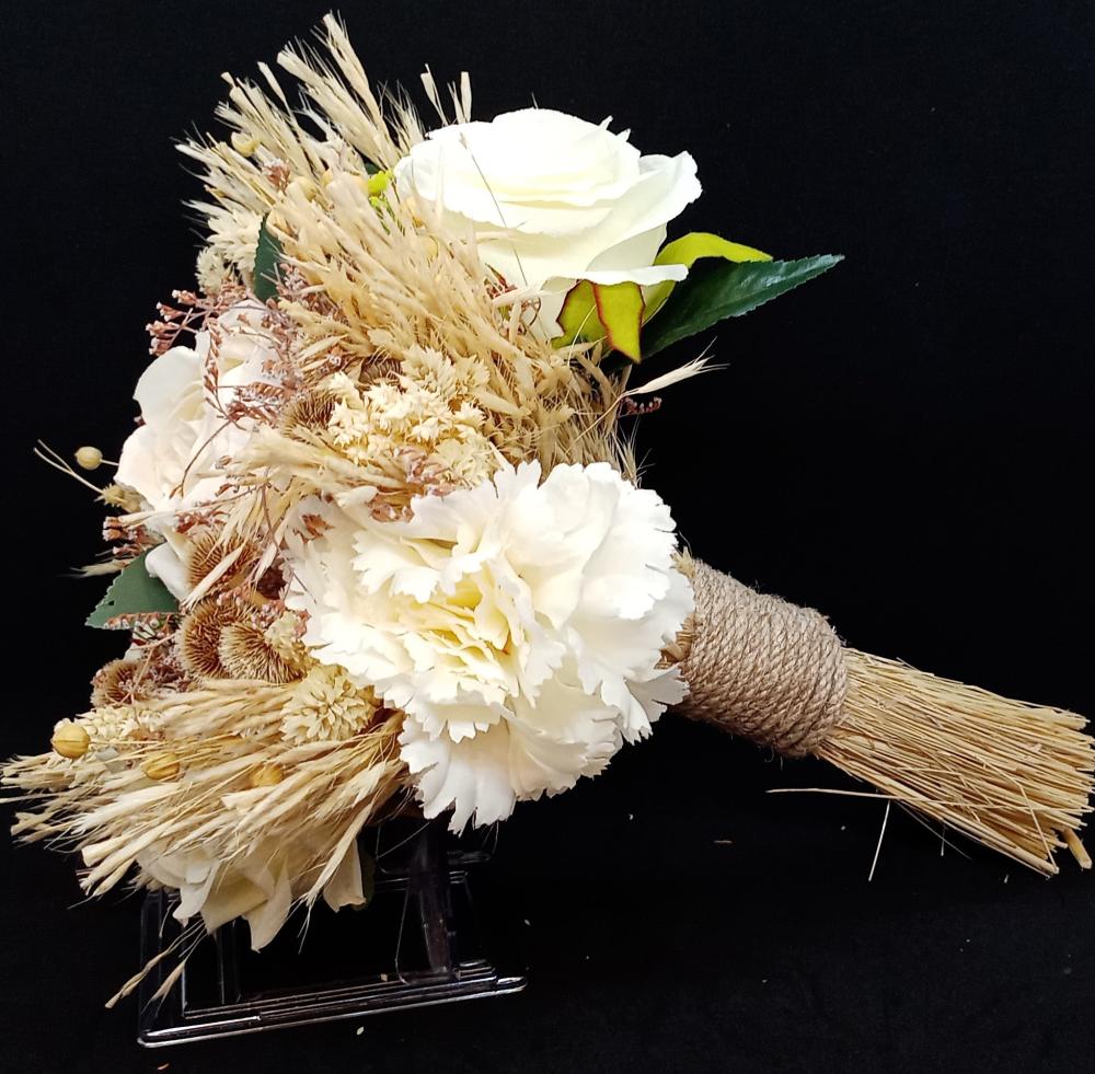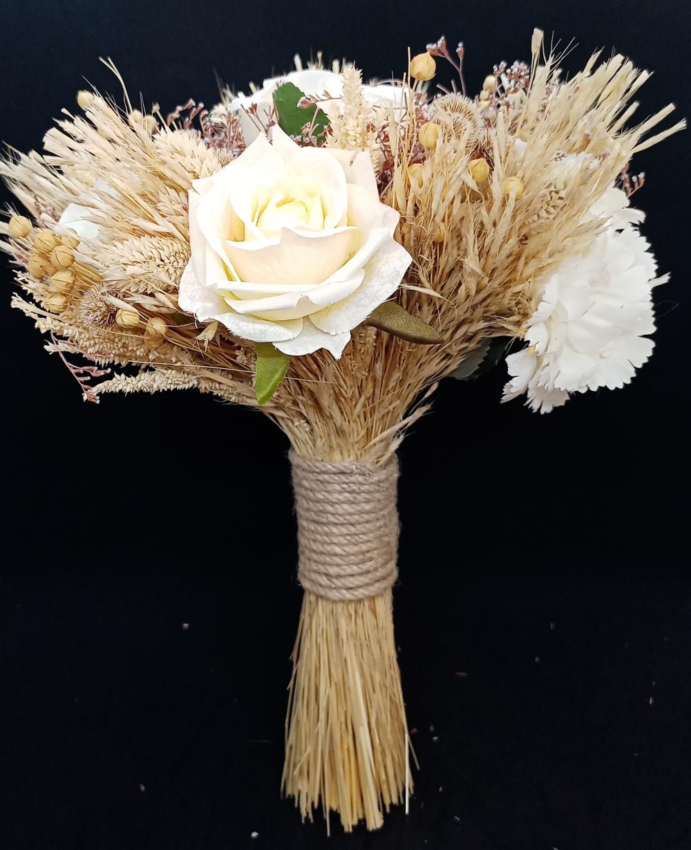 Başak Ve Deve Dikeni Detaylı Gül Ve Karanfil Gelin Buketi