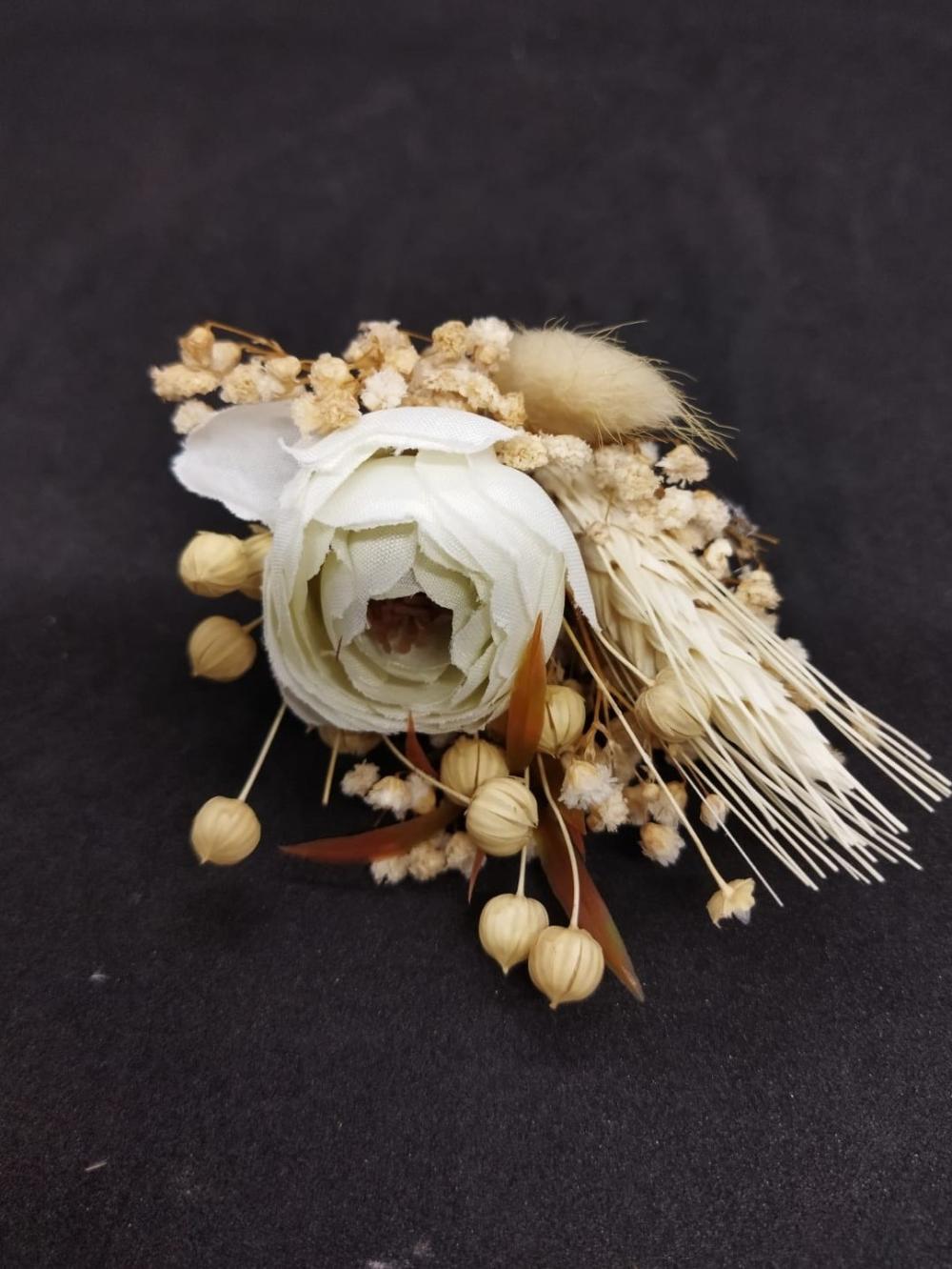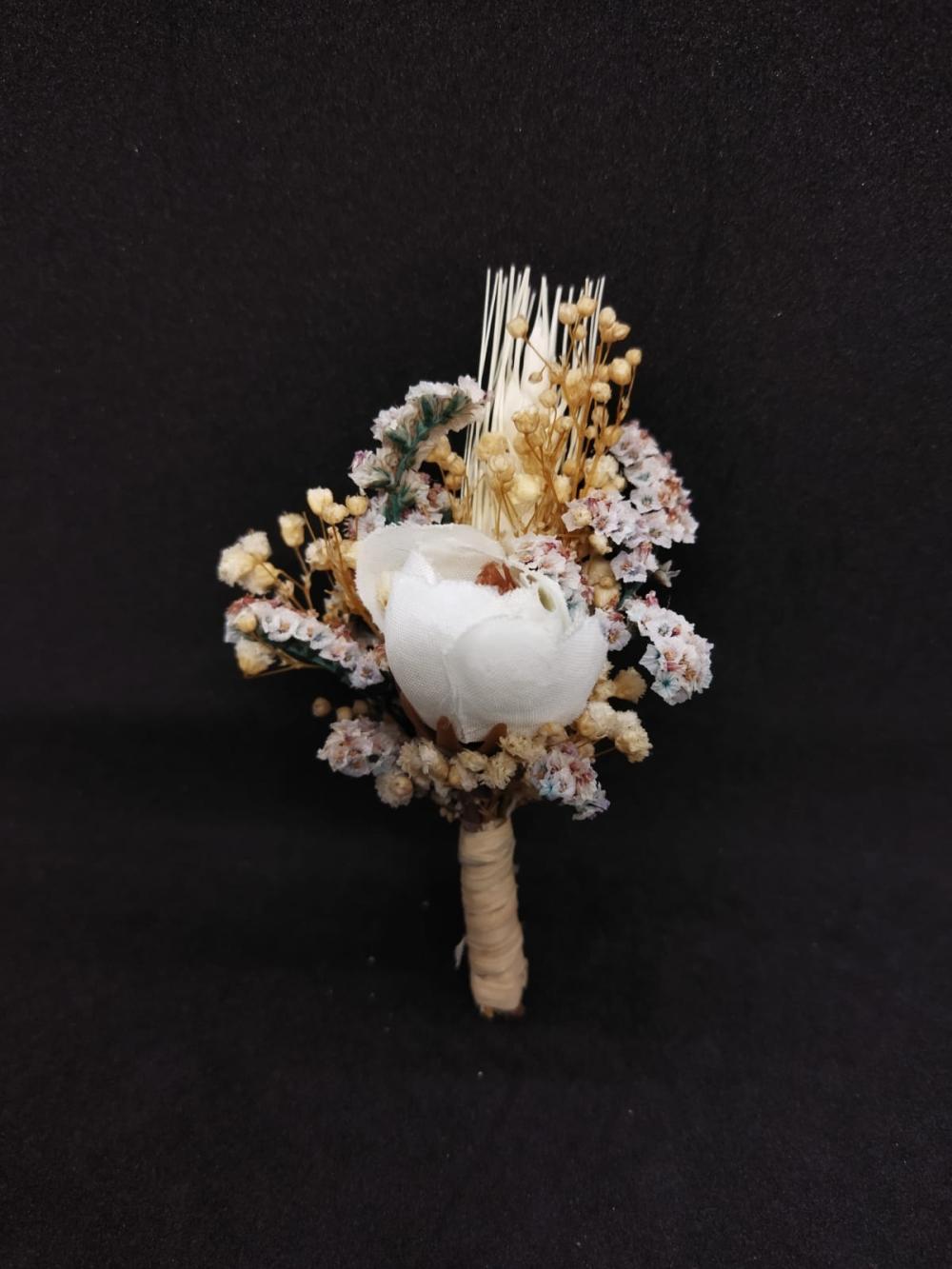 Başak Ve Mor Çiçek Detayına Sahip Beyaz Şakayık Damat Yaka Çiçeği