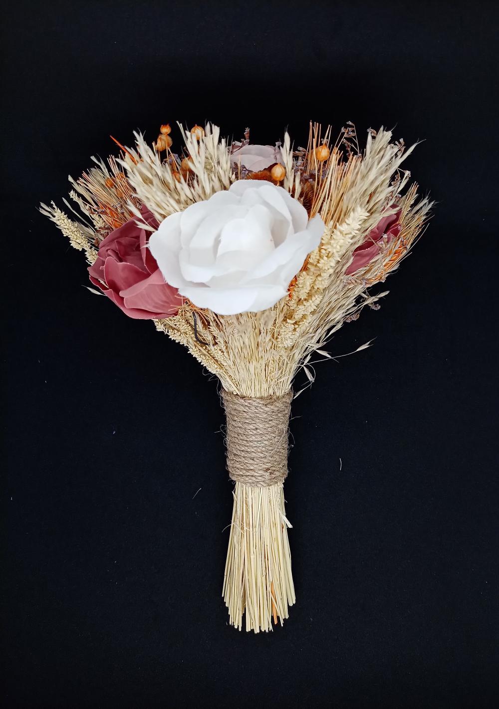 Başaklar Ve Turuncu Cipsolarla Süslenmiş Renkli Gül Gelin Buketi.