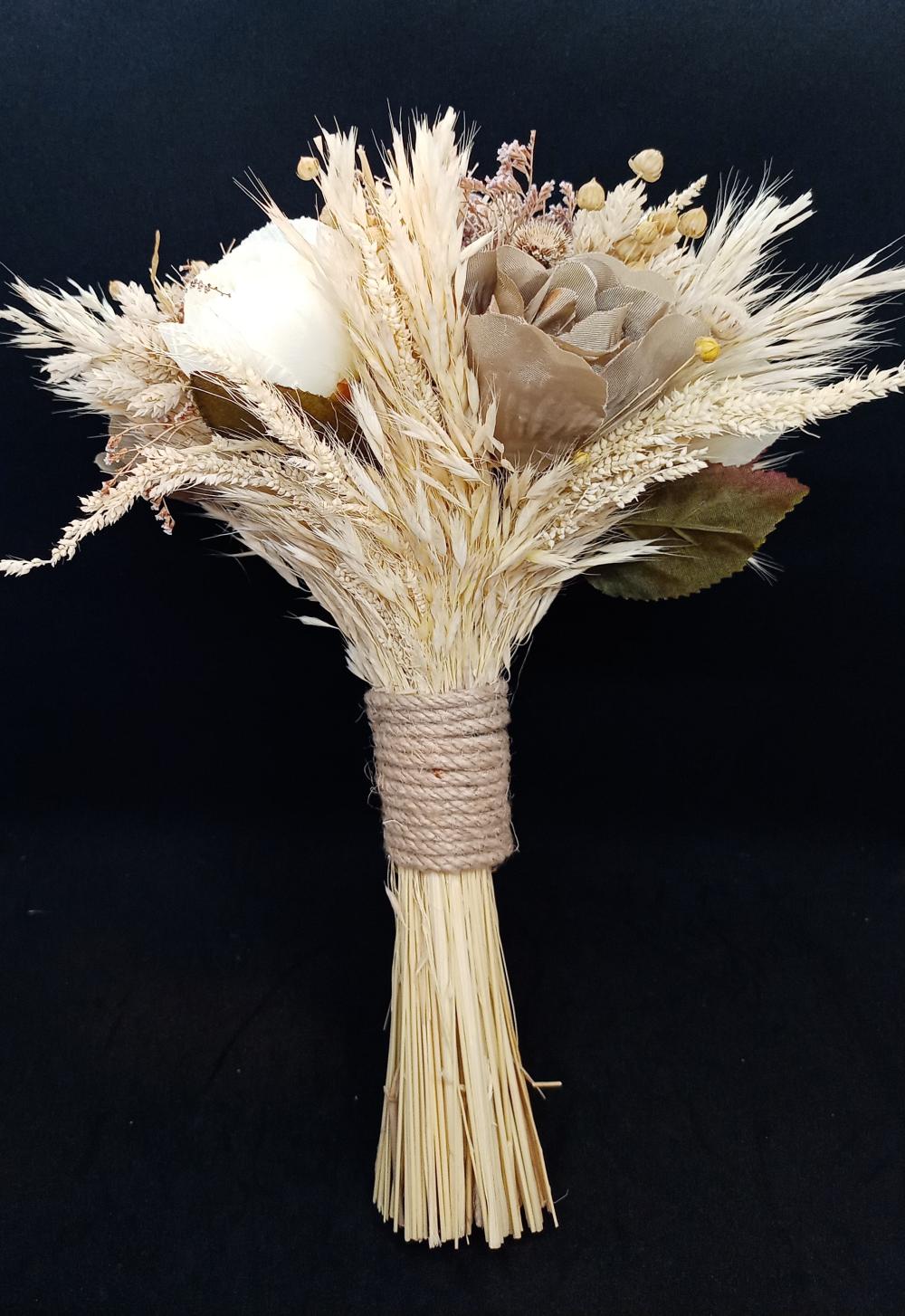 Başaklarla Süslenmiş Aranjman Gelin Buketi