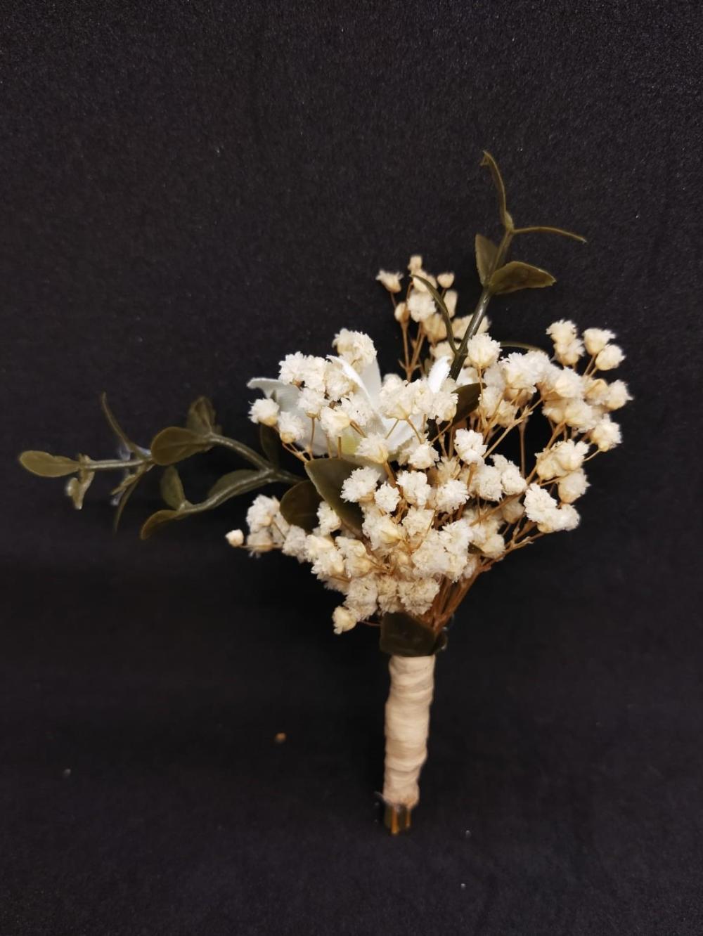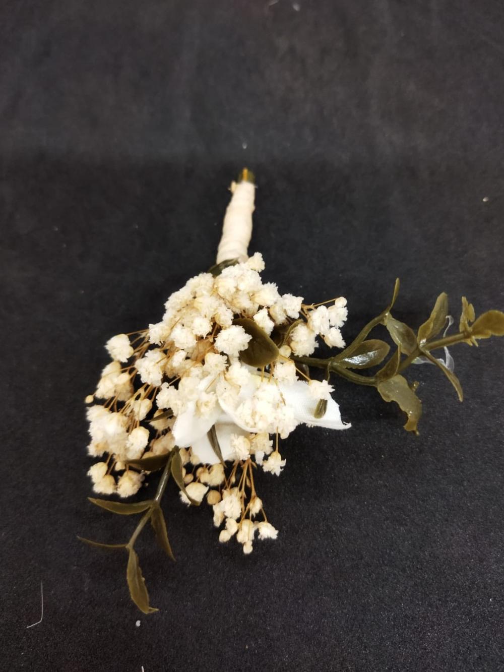 Beyaz Çiçek Detayı Olan Cipsolarla Süslenmiş Damat Yaka Çiçeği