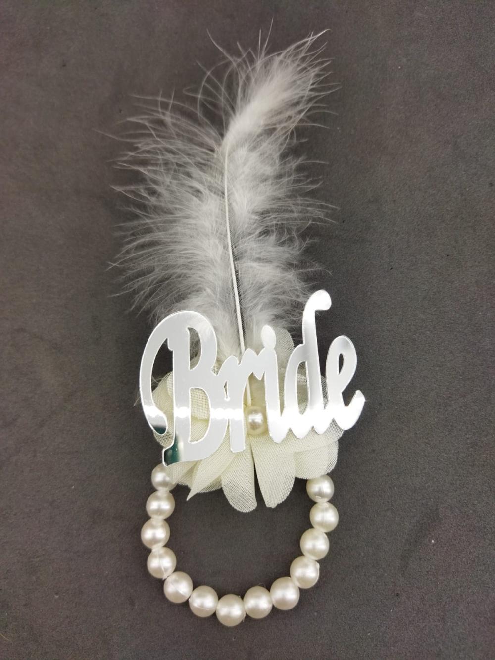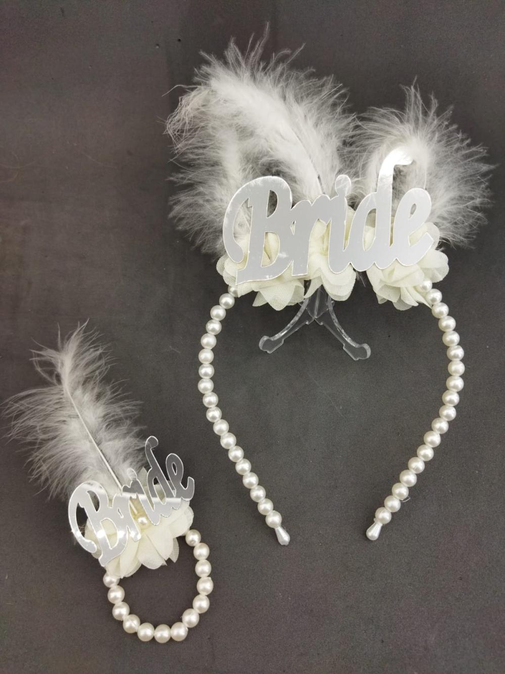 Beyaz Çiçek Detaylı Gümüş Renk Bride Taç Ve Bileklik Seti