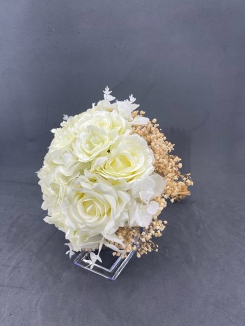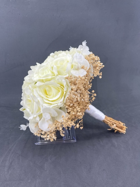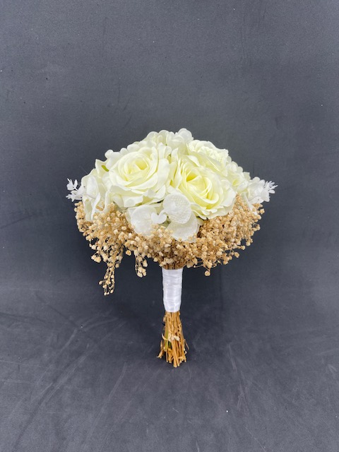 Beyaz Çiçekler ve Cipsolarla Süslenmiş Gül Gelin Buketi