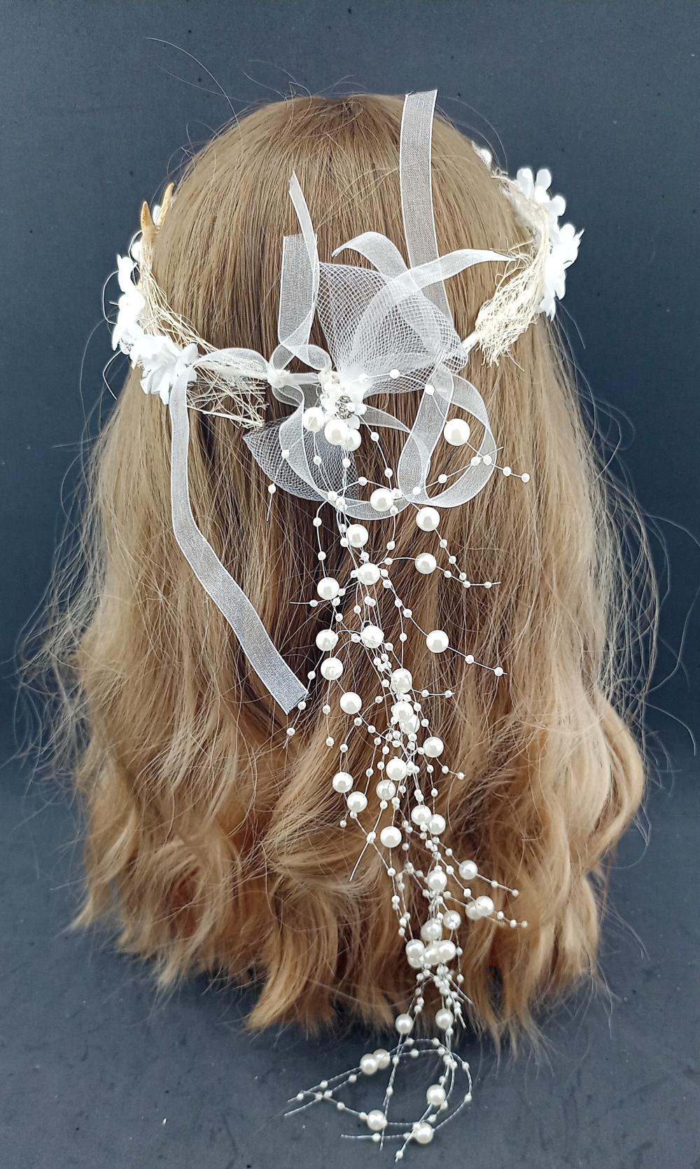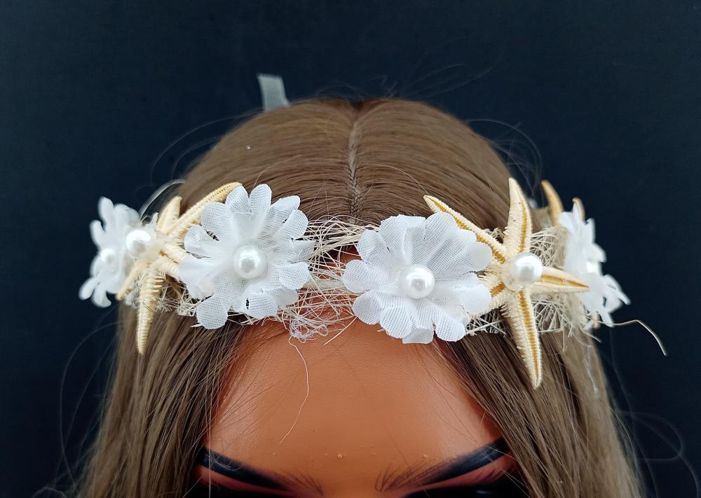 Beyaz Çiçekler Ve Deniz Yıldızı İle Süslenmiş Gelin Tacı