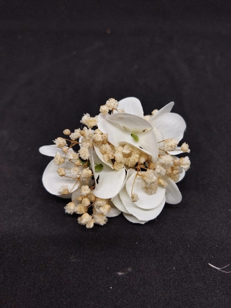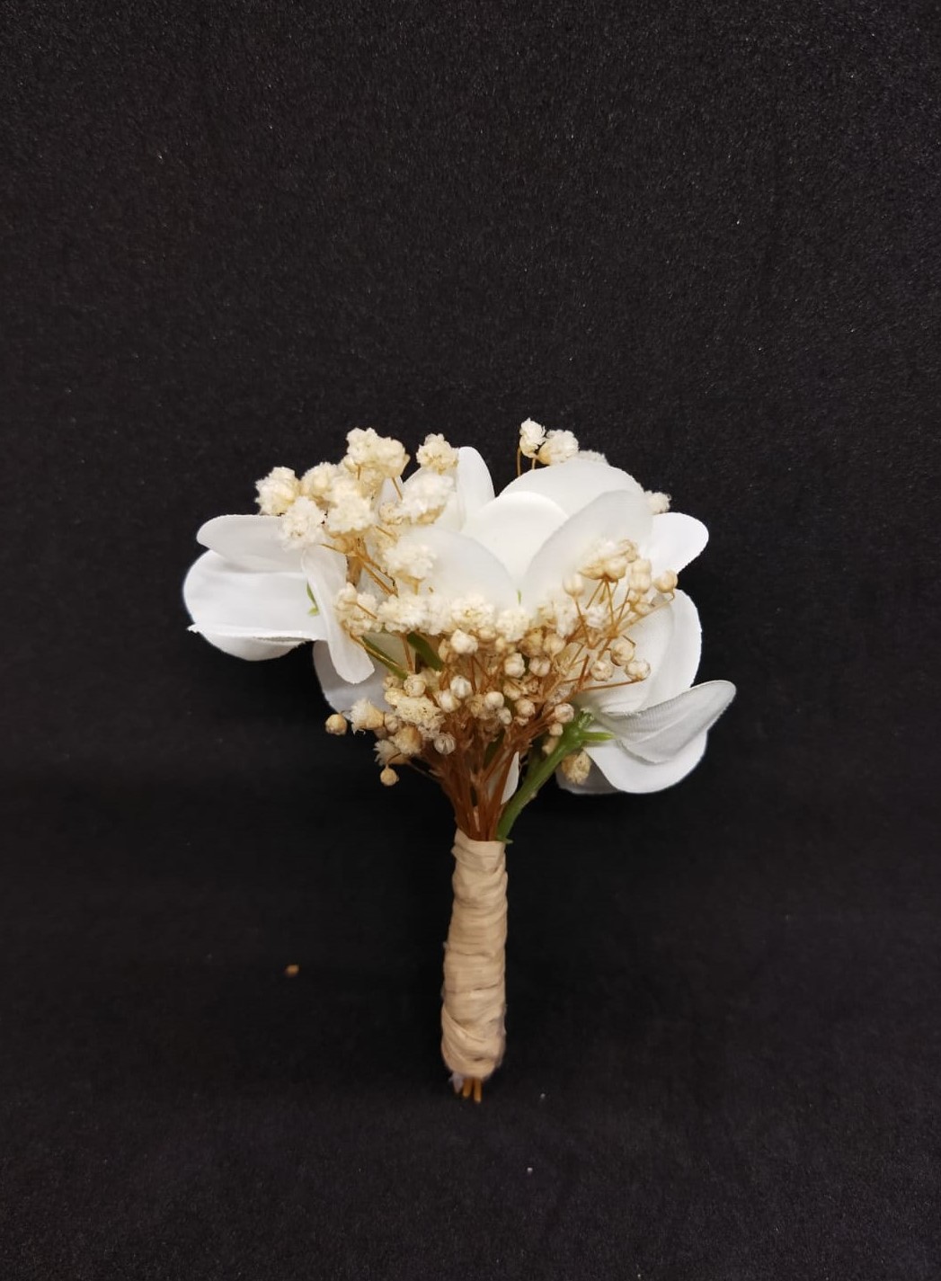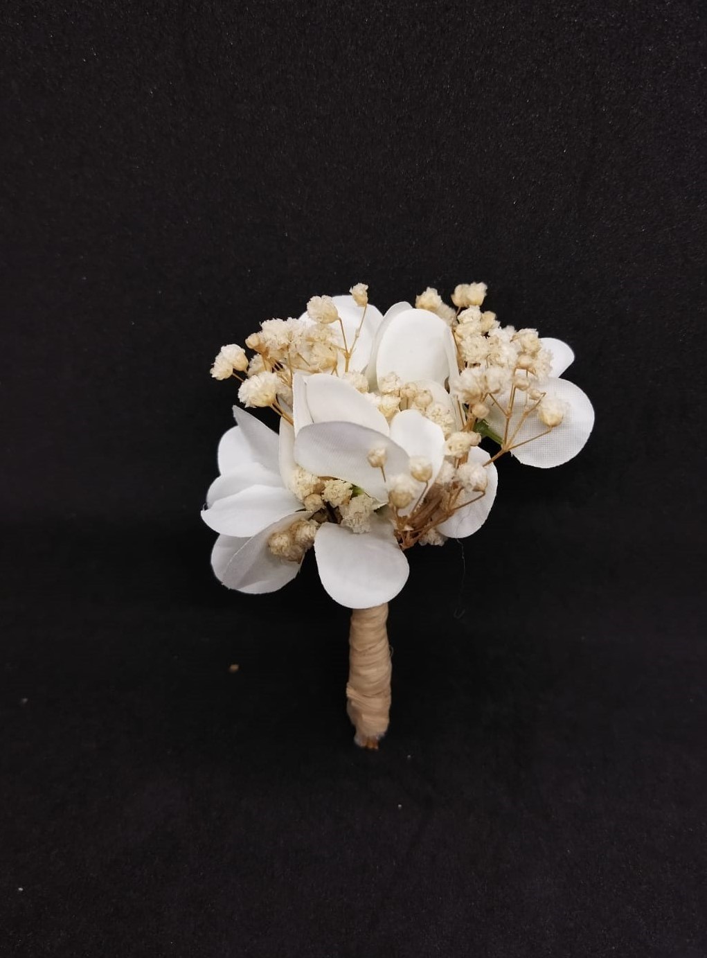 Beyaz Çiçekler Ve Krem Cipsolarla Süslenmiş Damat Yaka Çiçeği