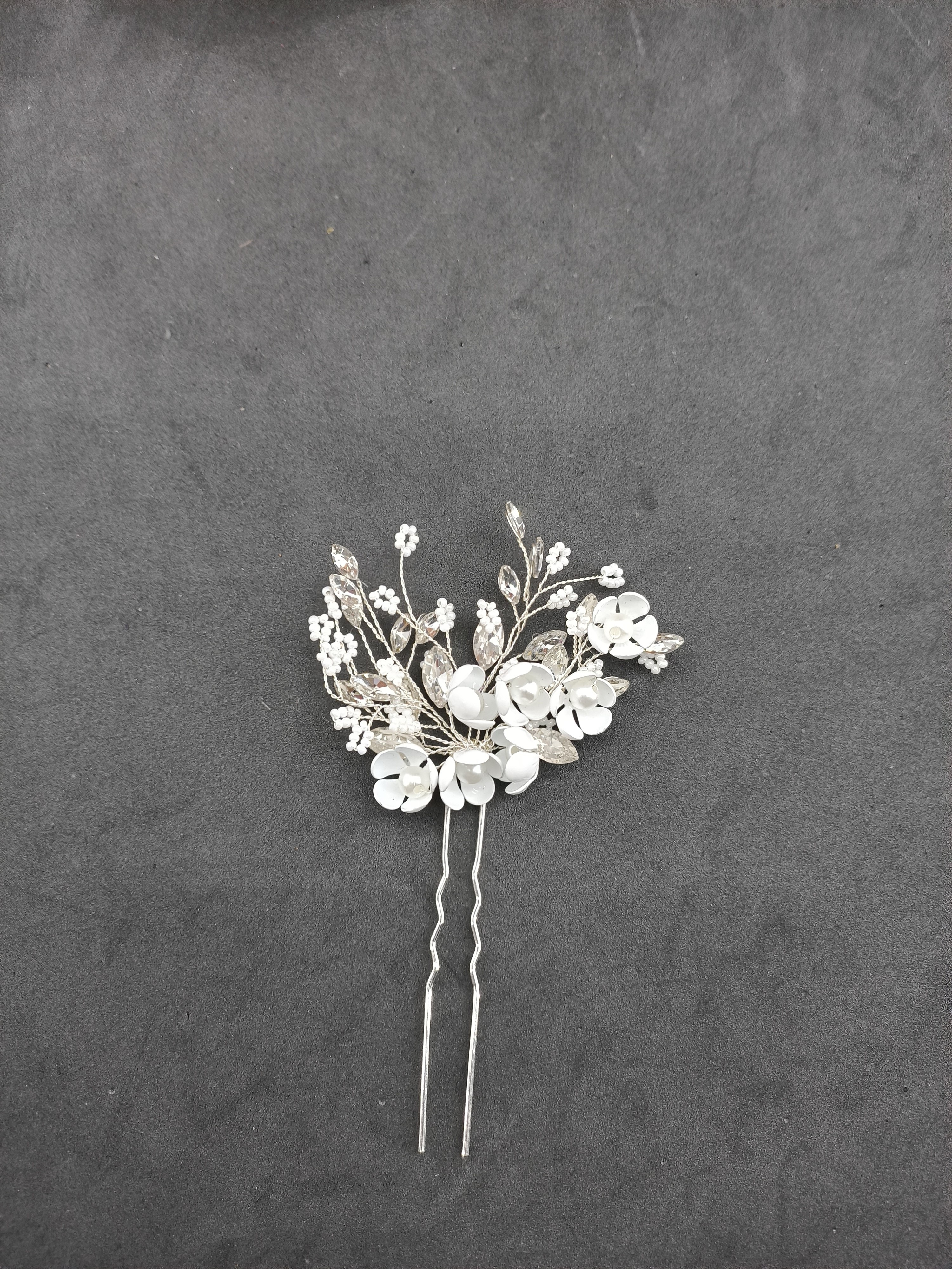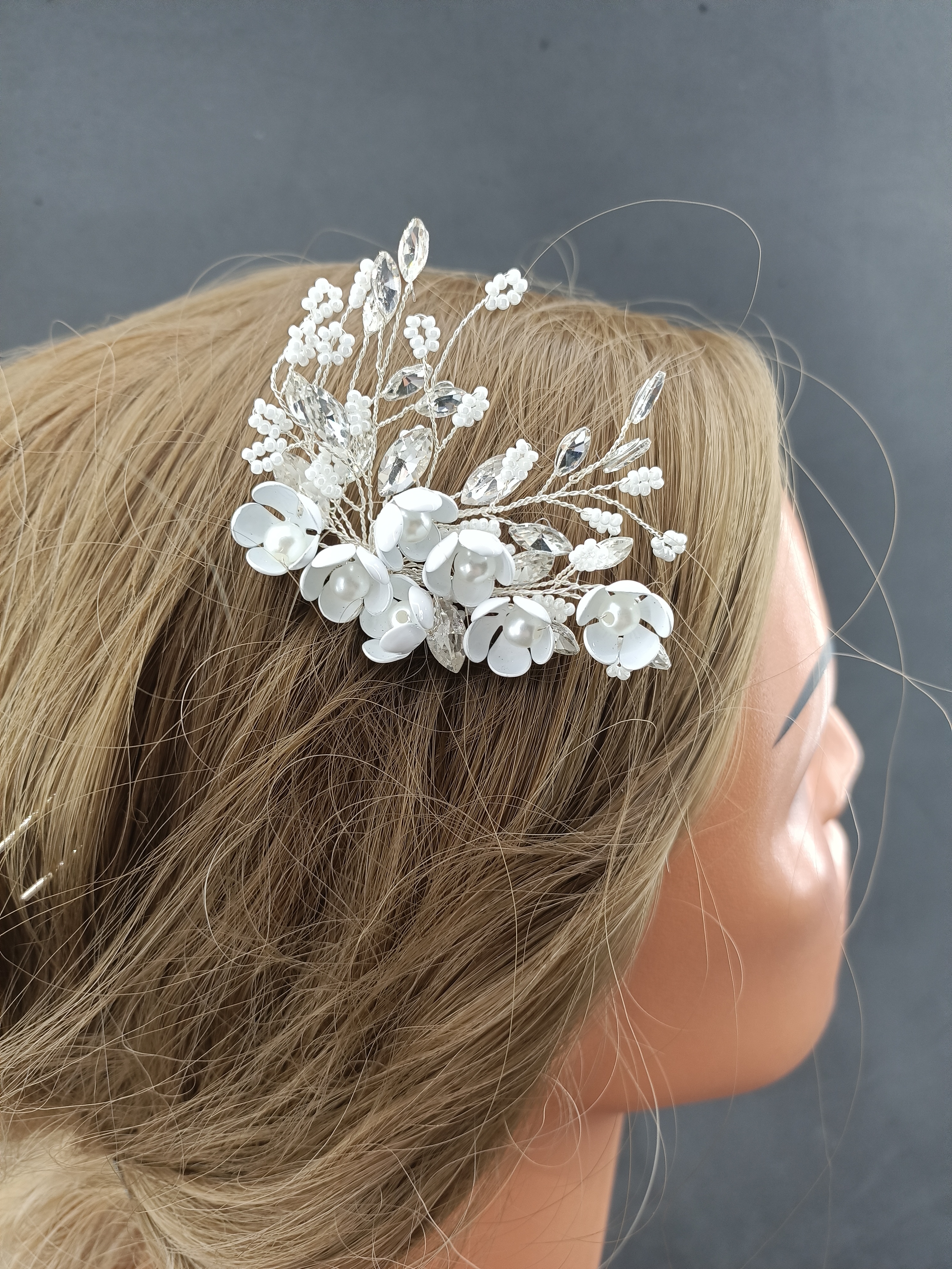 Beyaz Çiçeklerden Oluşan İnci Ve Taşlı Gelin Nişan Kına Tokası