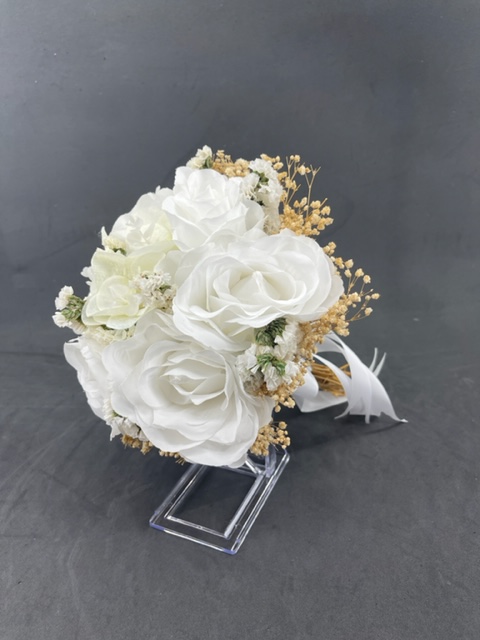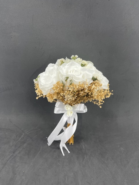 Beyaz Çiçeklerle Ve Cipsolarla Süslenmiş Kırdeleli Gül Buketi
