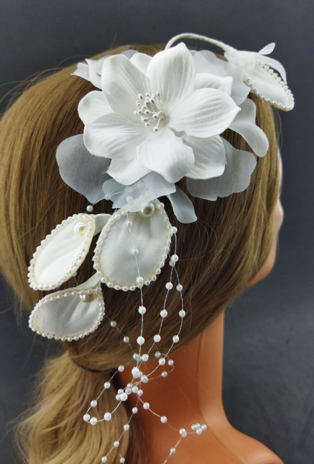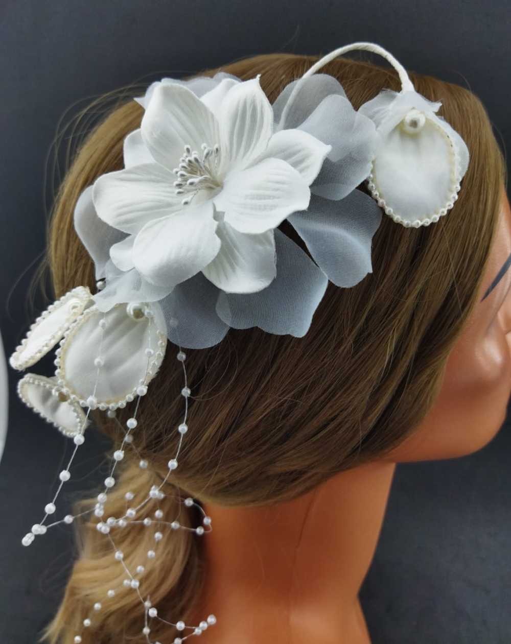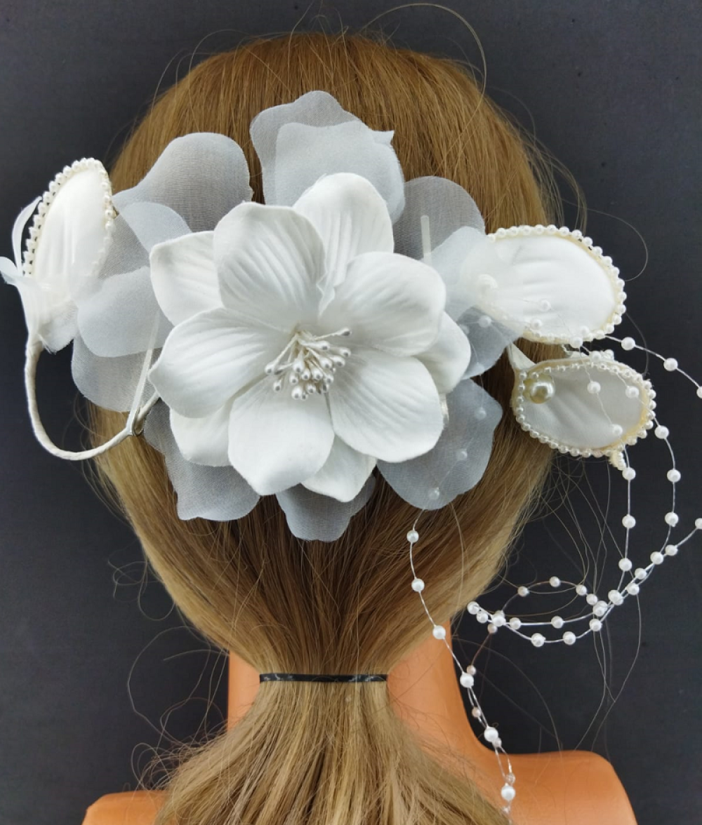 Beyaz Çiçekten Oluşan İnci Detaylarına Sahip Gelin Tokası