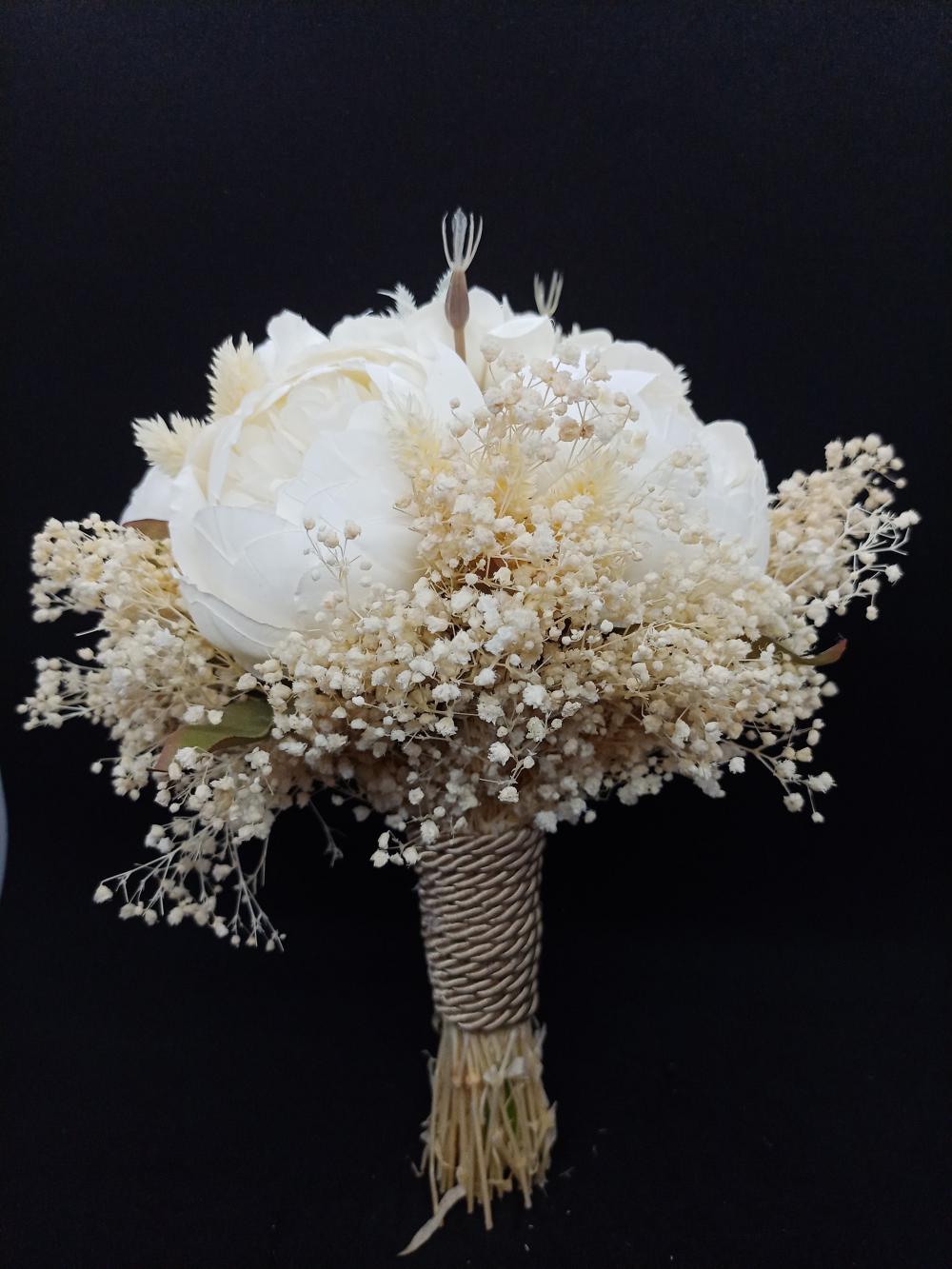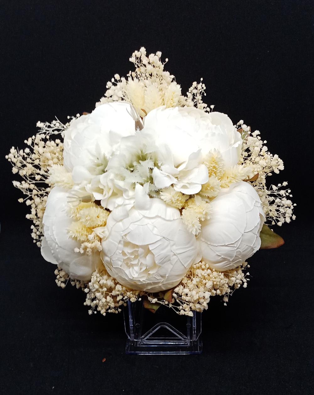 Beyaz Cipsolardan Oluşan Beyaz Şakayık Gelin Buketi