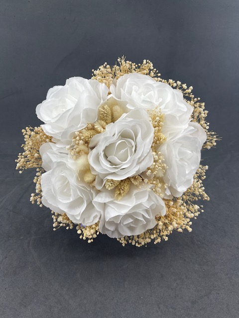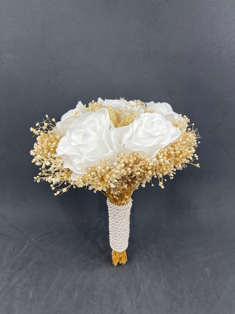 Beyaz Cipsolarla Süslenmiş Şık Gül Gelin Buketi
