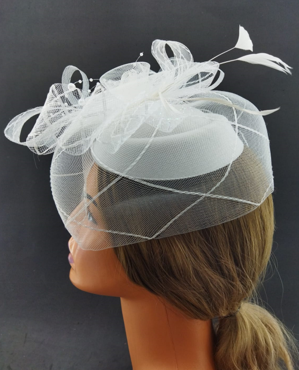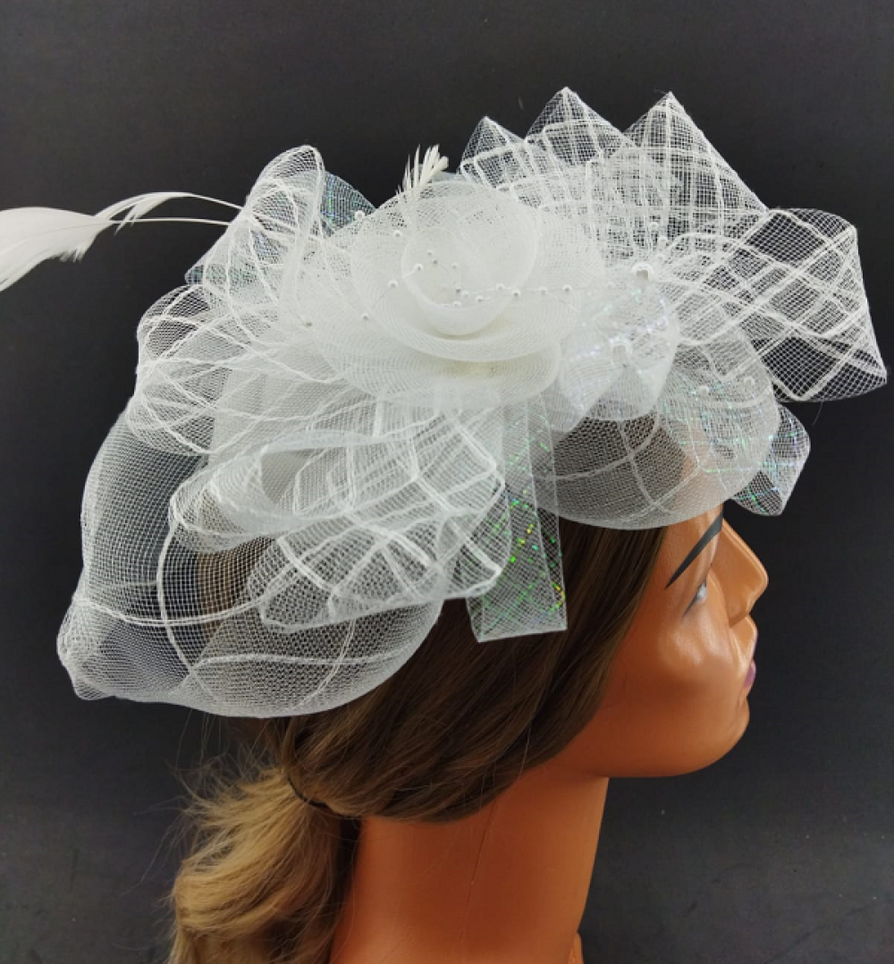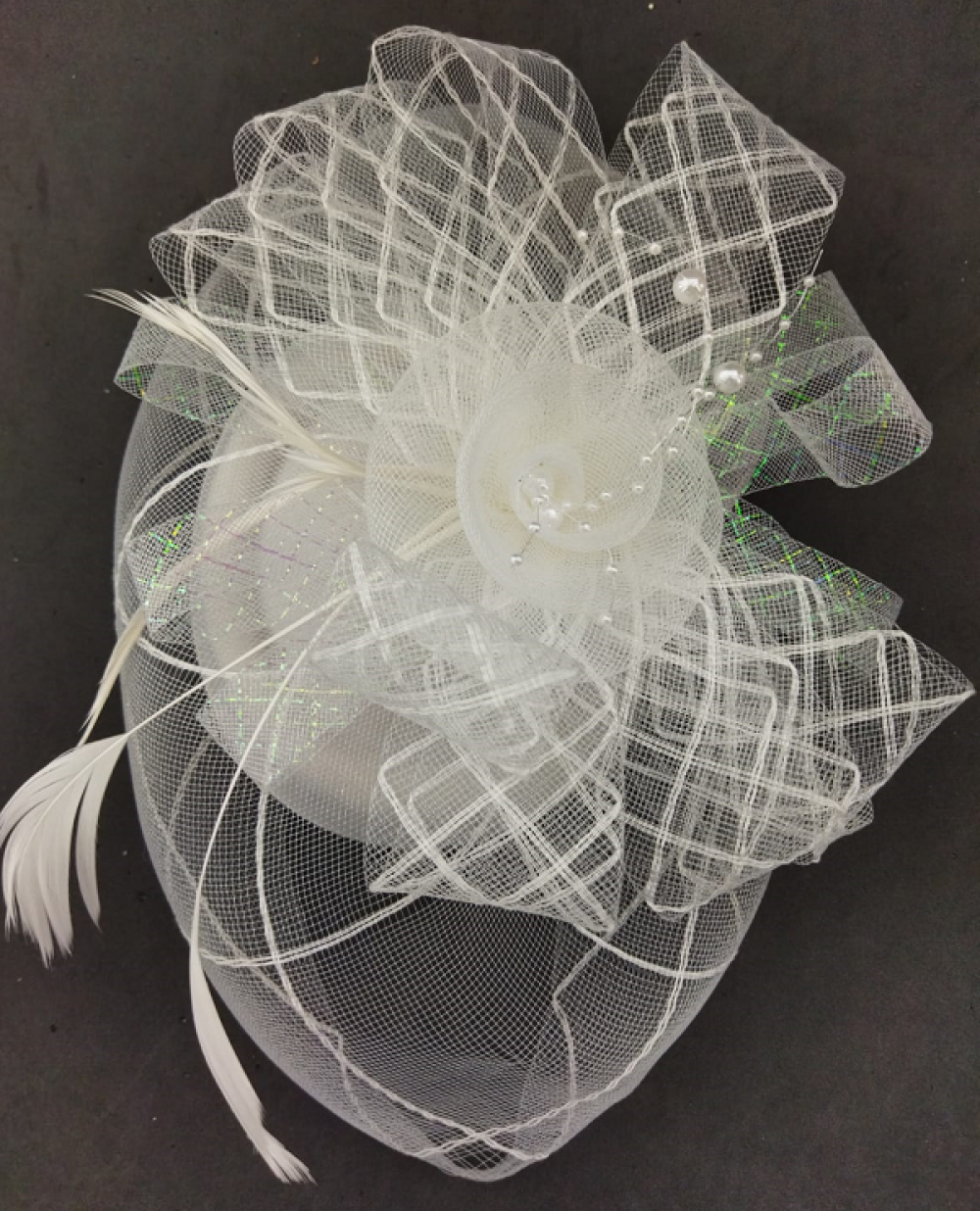 Beyaz Gül Detaylı Tüllerle Şekillendirilmiş Vualet Şapka Nikah Kepi