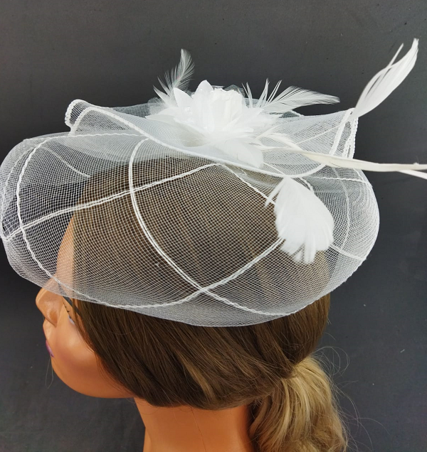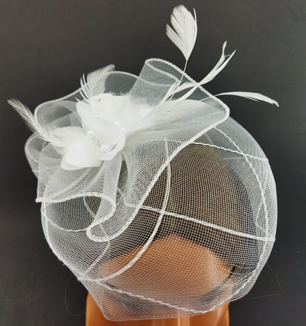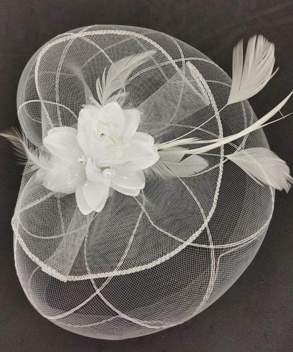 Beyaz Gülden Oluşan Tüllü Vualet Şapka Nikah Kepi