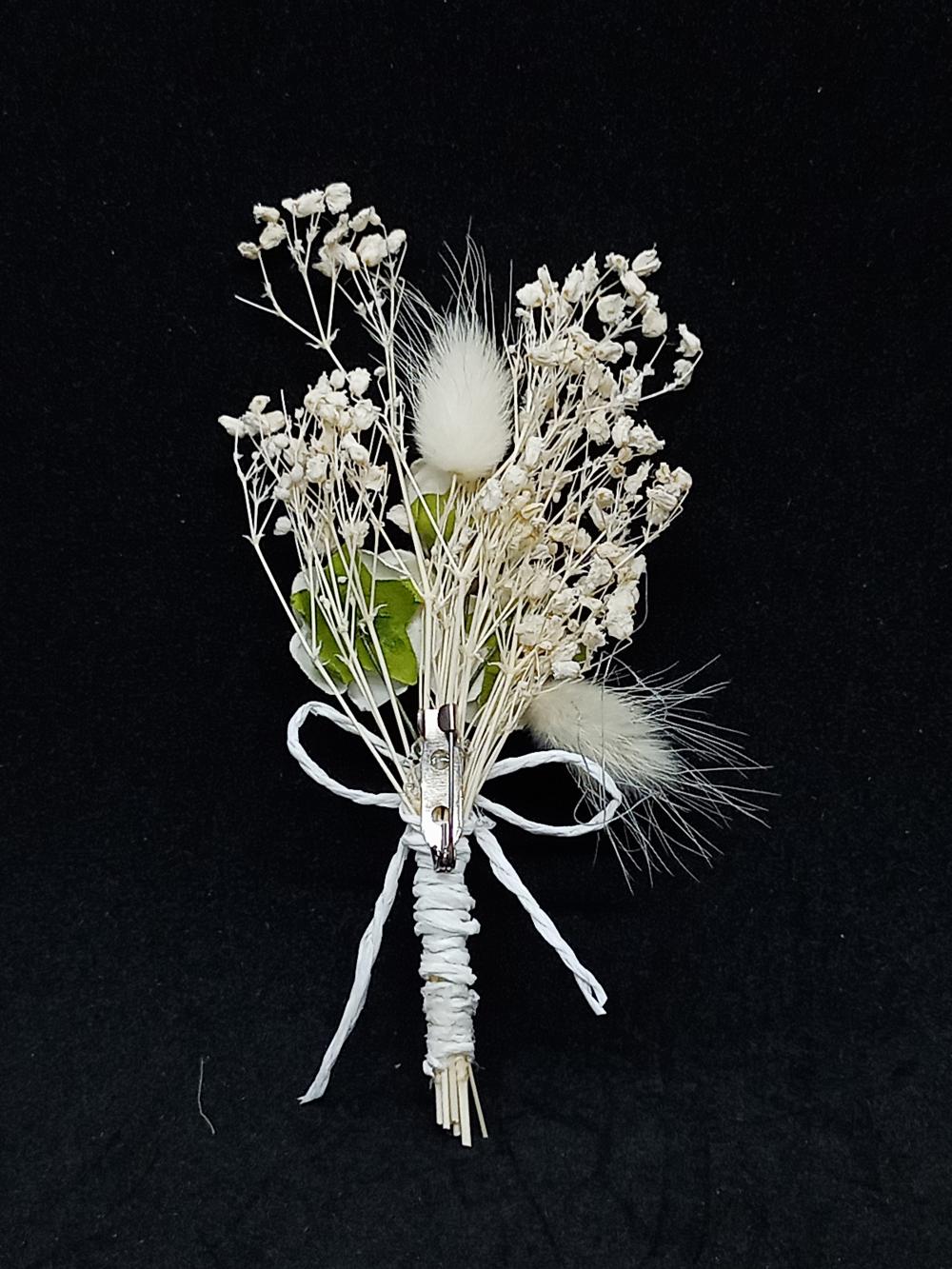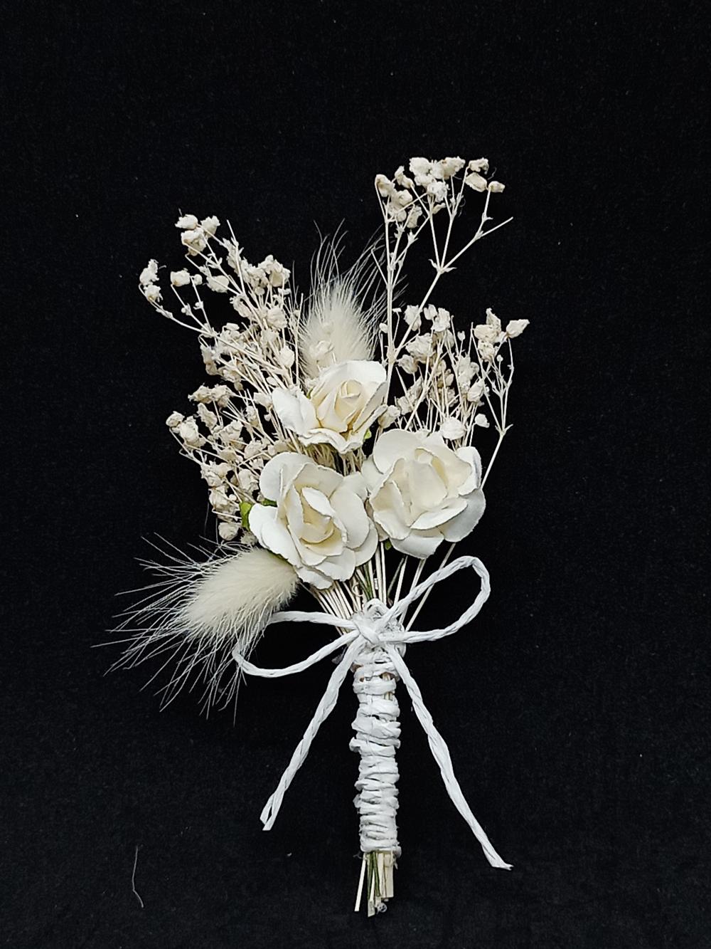 Beyaz Güllerden Ve Cipsolardan Oluşan Damat Yaka Çiçeği