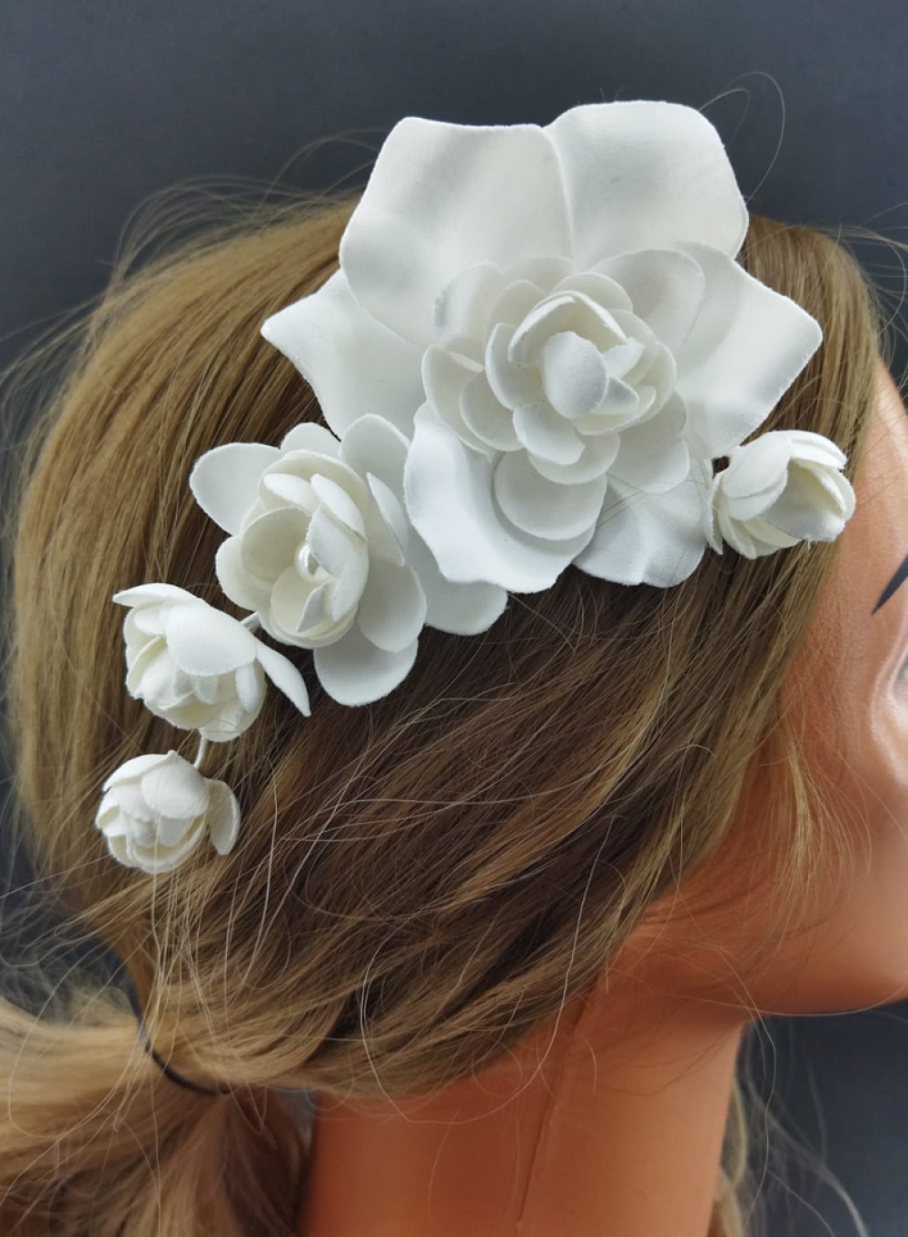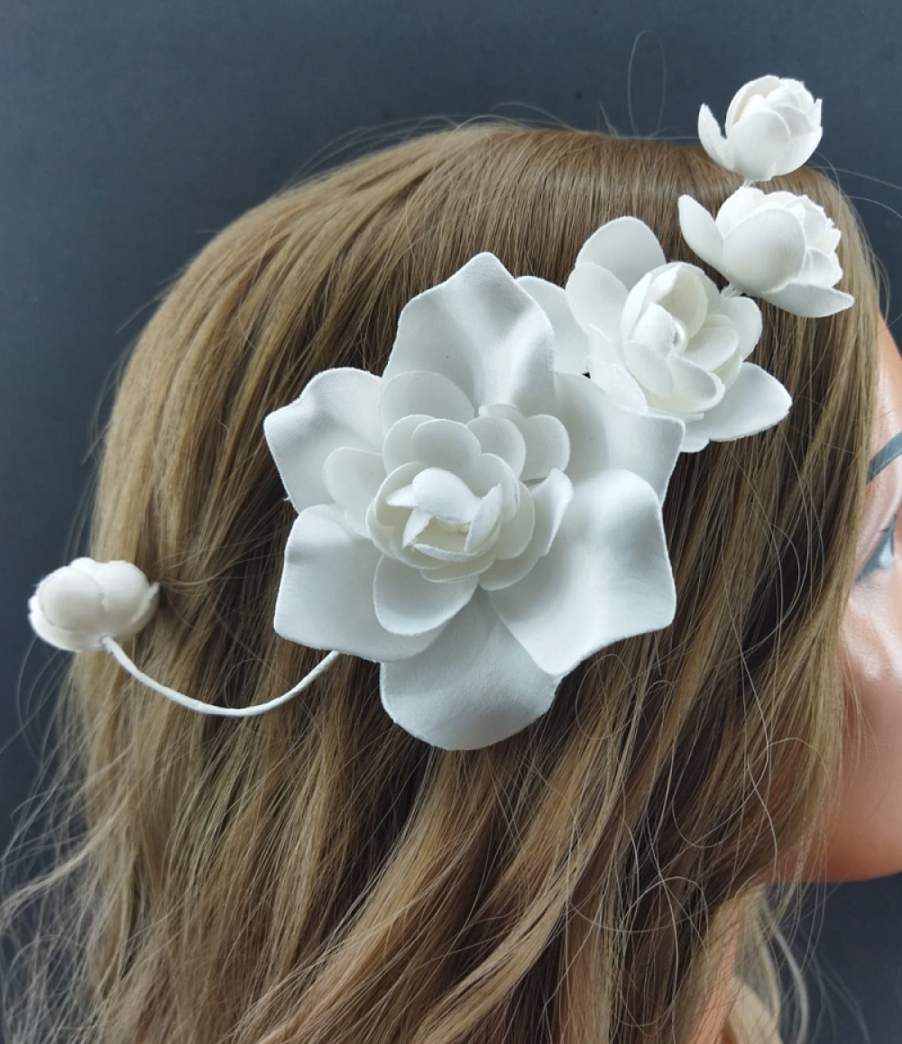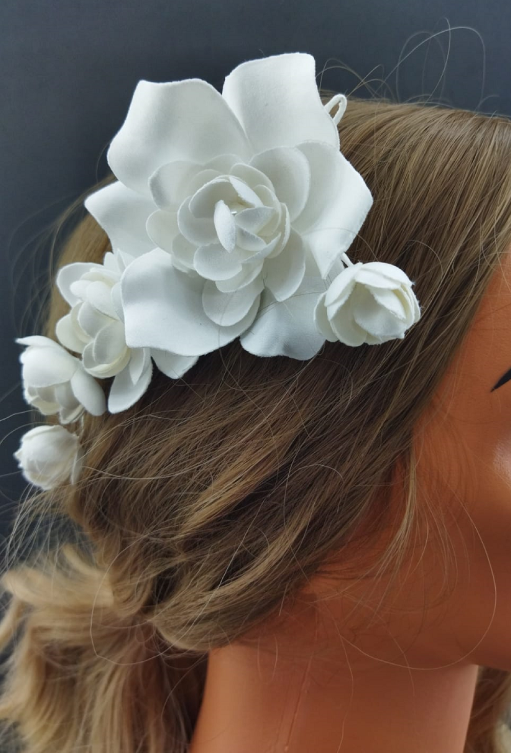 Beyaz Güllerle Süslenmiş Şık Gelin Tokası