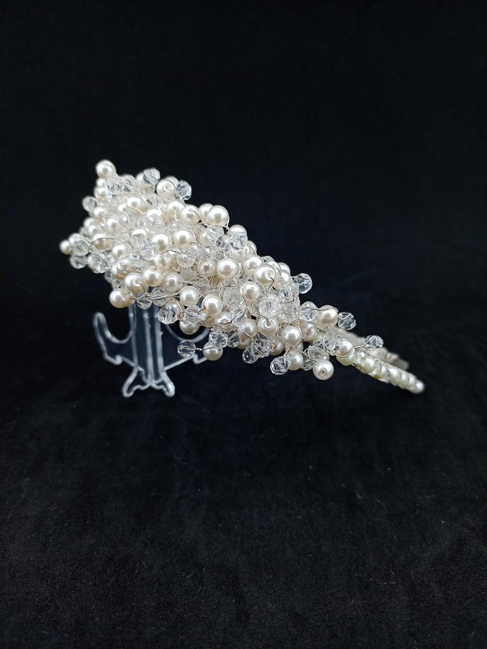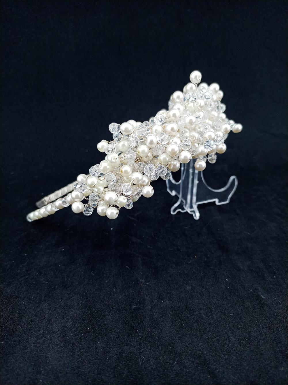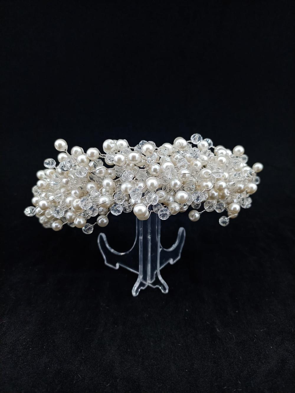Beyaz İnciler Ve Kristallerle Süslenmiş Gelin Tacı