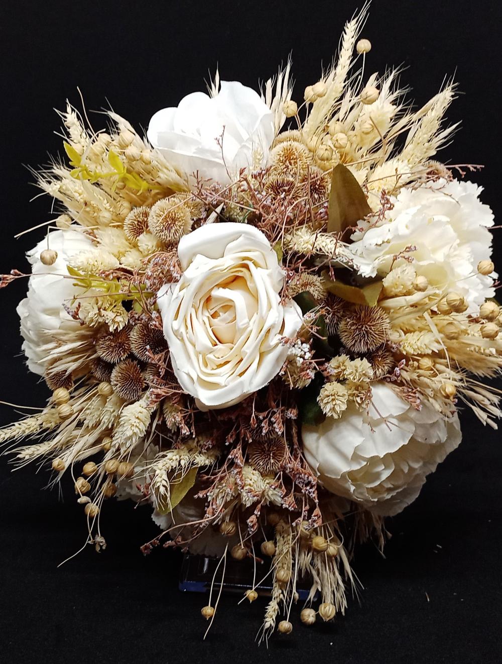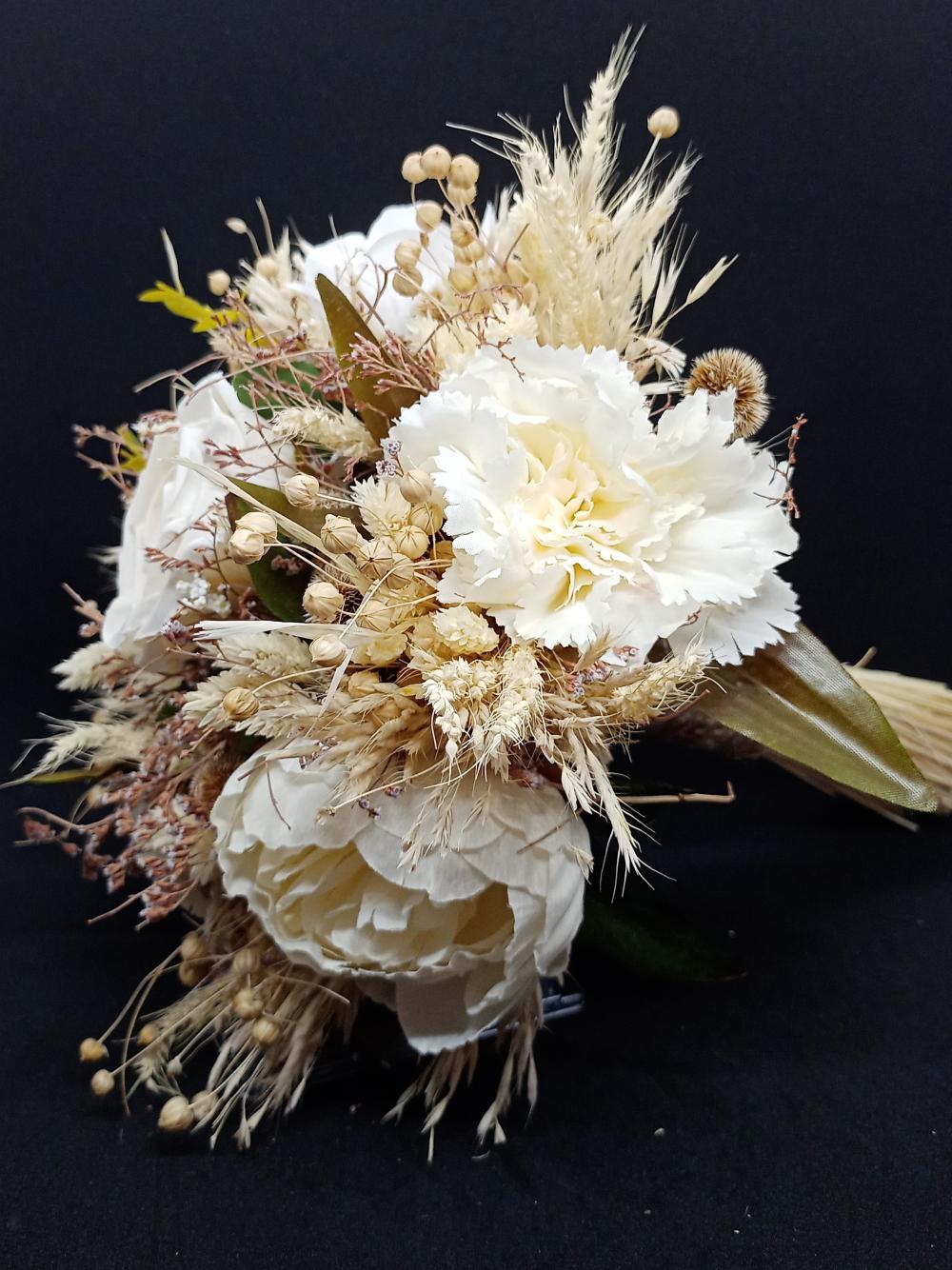 Beyaz Karanfil Ve Güllerden Oluşan Gelin Buketi