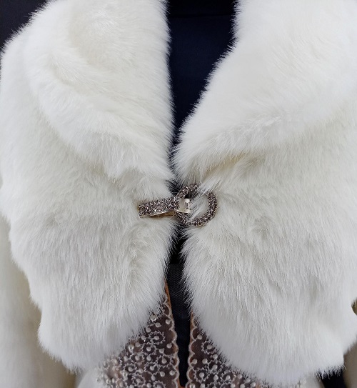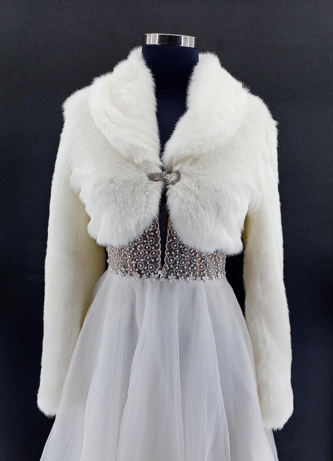 Kısa Kristal Broş Detaylı Gelin Etol Kürk Bolero