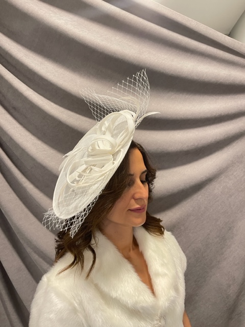 Beyaz Kumaş Fiyonk Ve File Detaylı Şapka Vualet Nikah Kepi