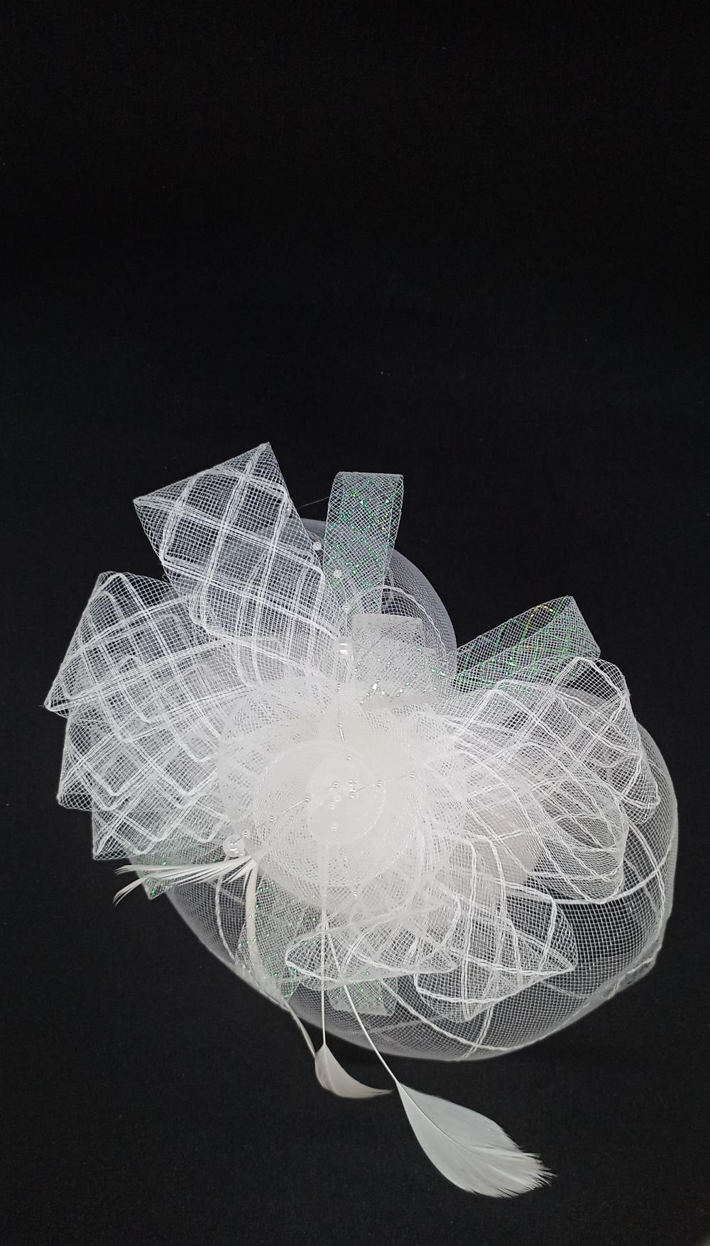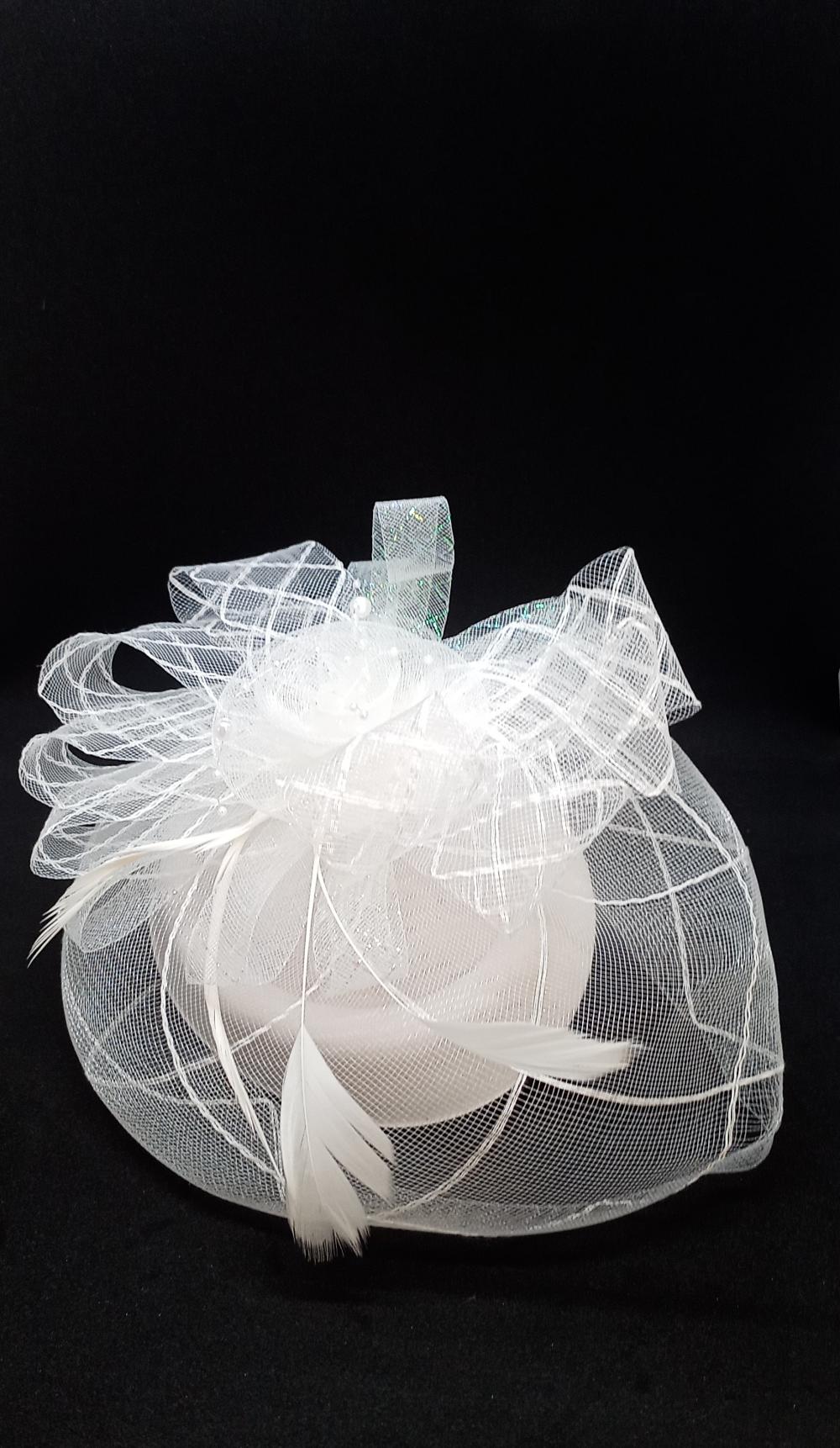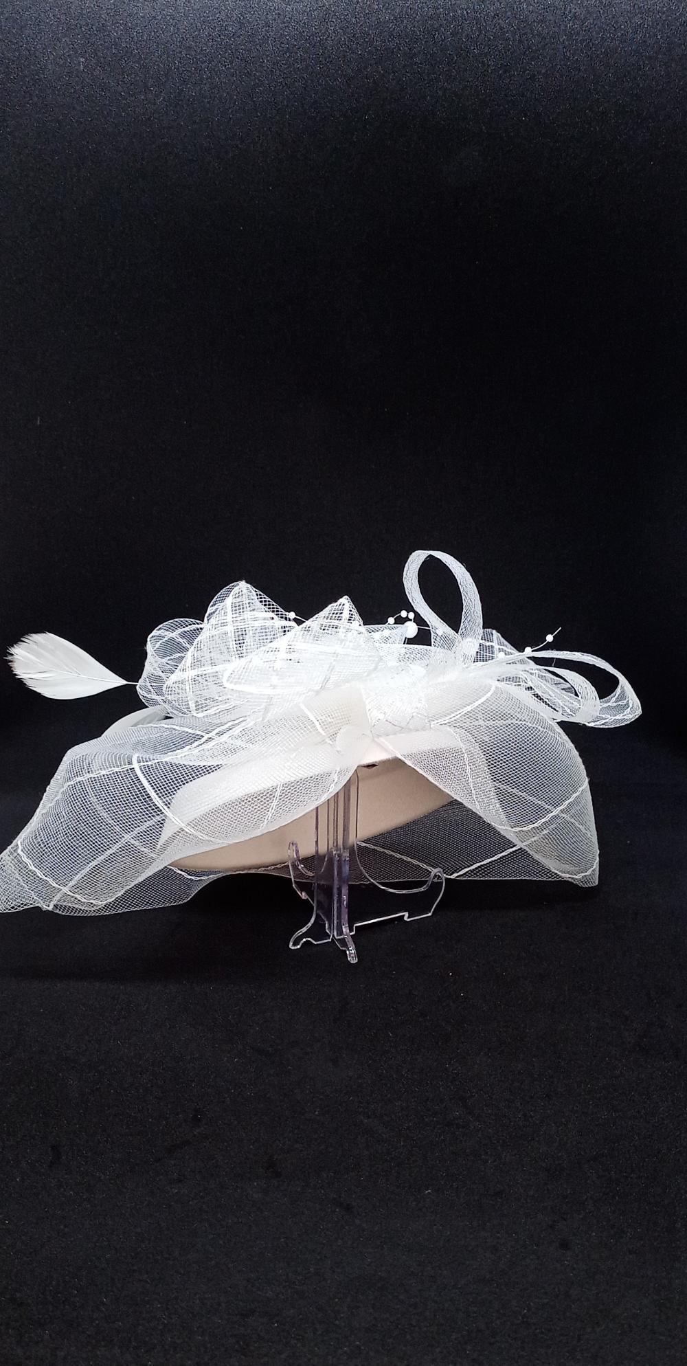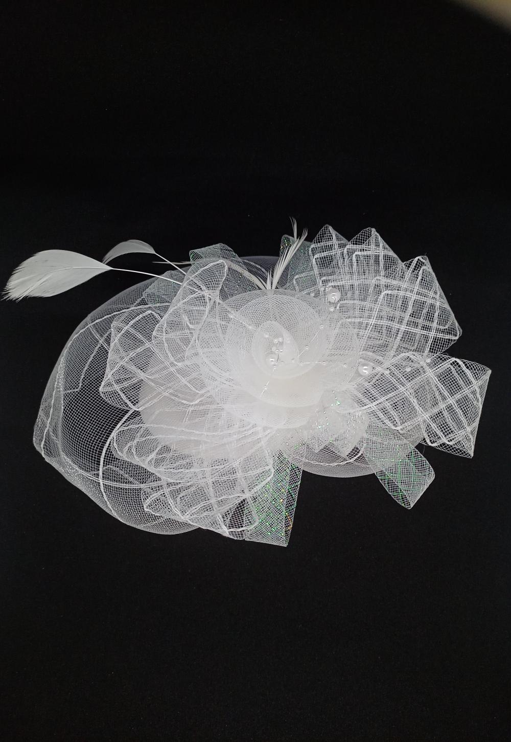 Beyaz Renk Tüyler Ve İncilerle Süslenmiş Vualet Şapka Nikah Kepi