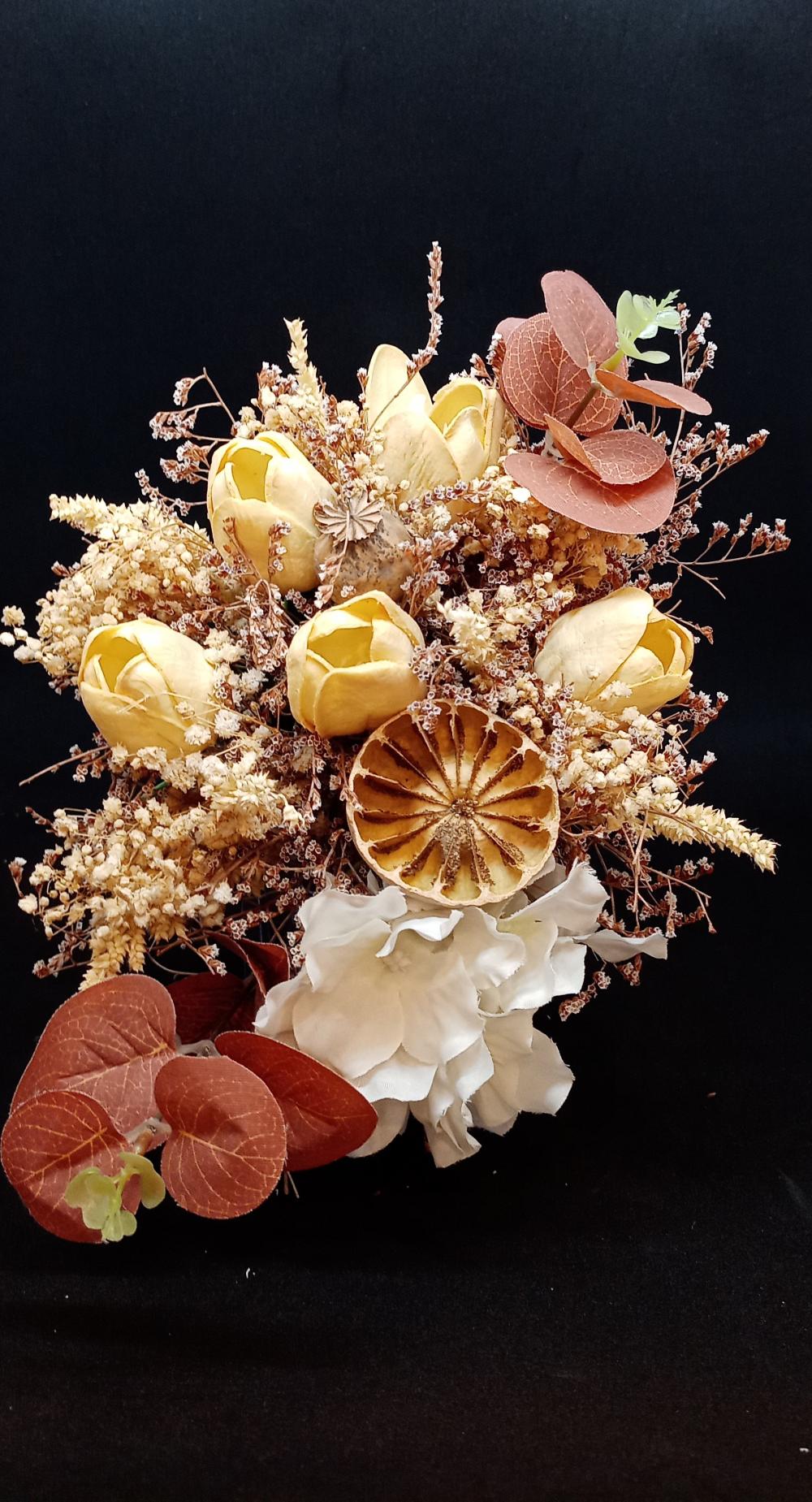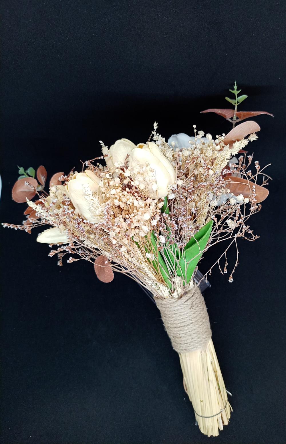 Beyaz Şebboy Ve Lalelerden Oluşan Gelin Buketi