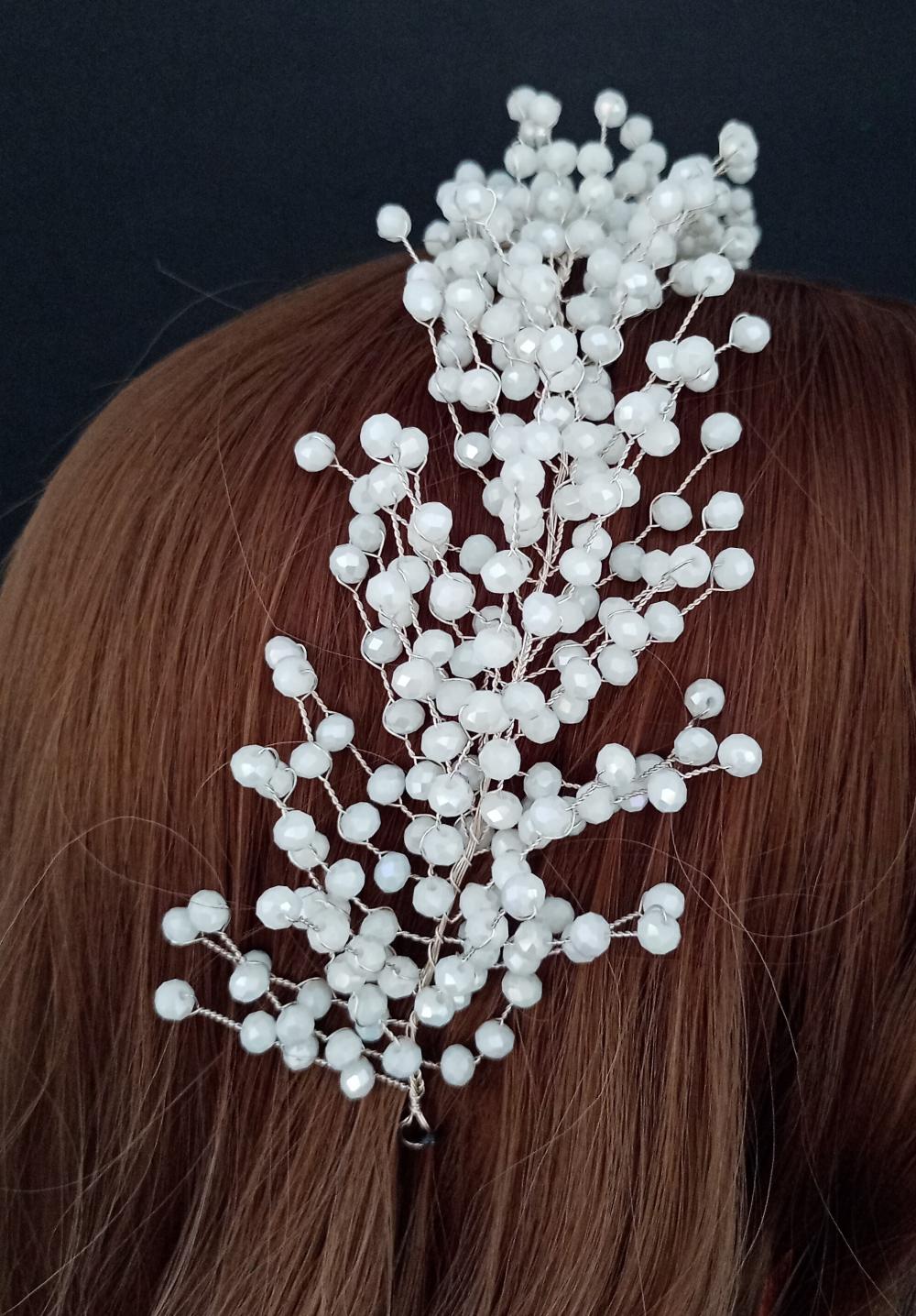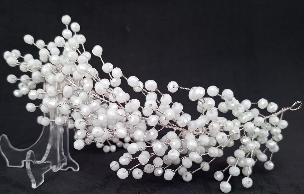 Beyaz Top Kristallerden Oluşan Gümüş Renkli Gelin Tacı