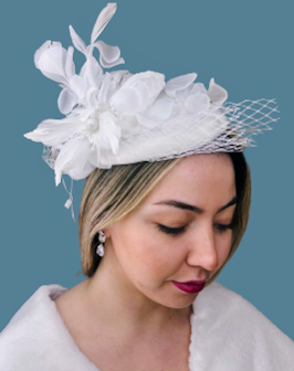 Nikahta veya düğünde kullanabileceğiniz fiyonk detayı olan beyaz tüylü vualet şapka nikah kepi nikahınızda size hoş ve zarif bir görürünüm sağlayacaktır.