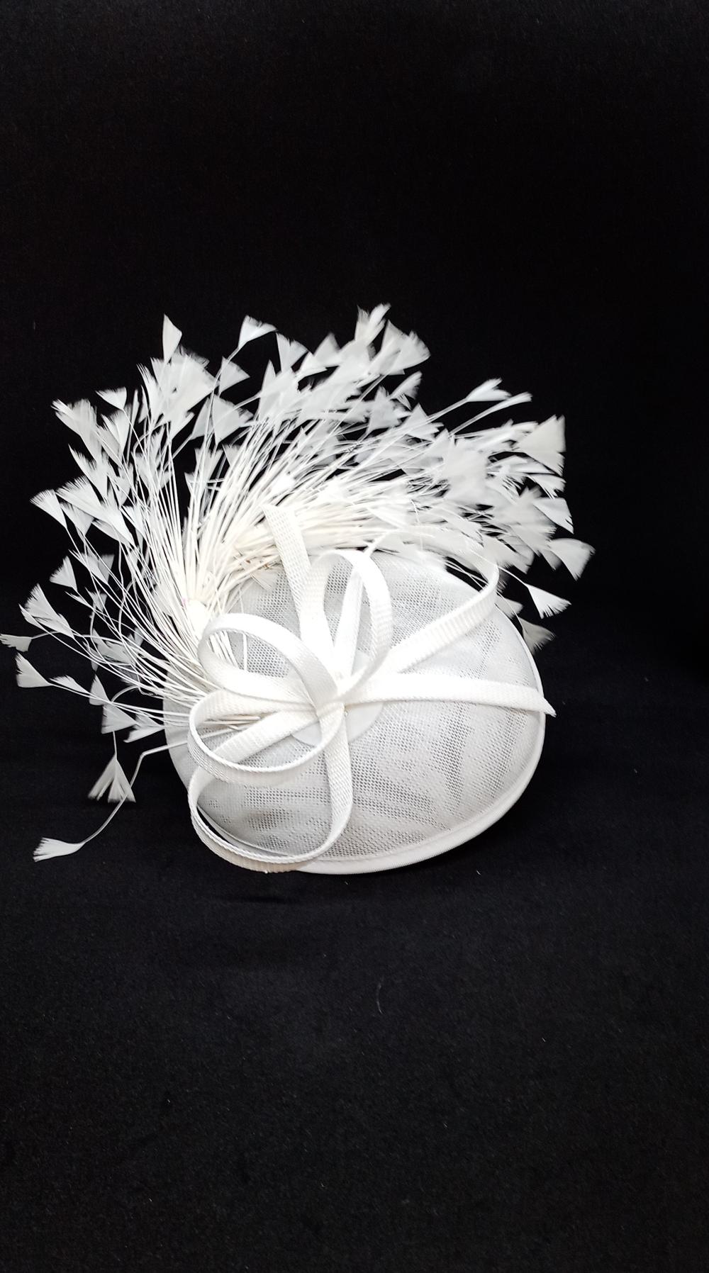 Nikahta veya düğünde kullanabileceğiniz fiyonk detayı olan beyaz tüylü vualet şapka nikah kepi nikahınızda size hoş ve zarif bir görürünüm sağlayacaktır.