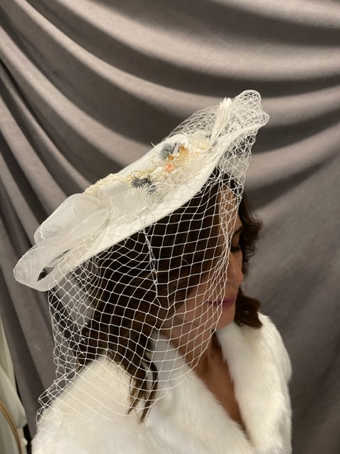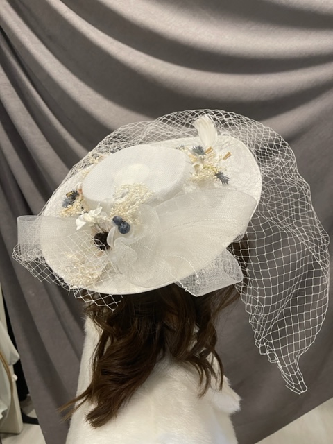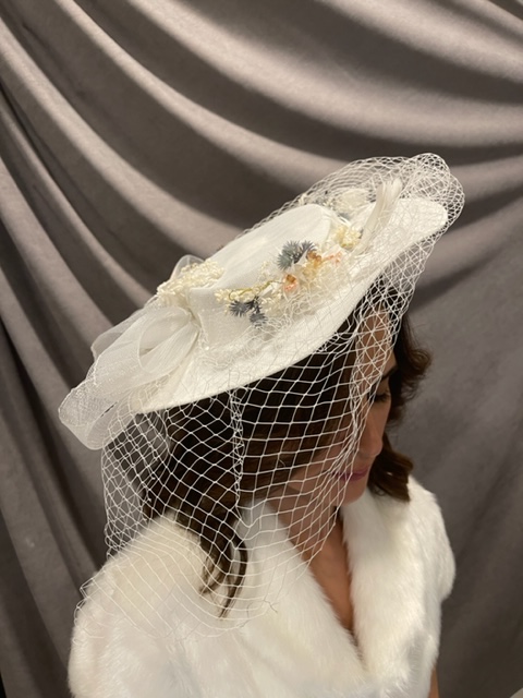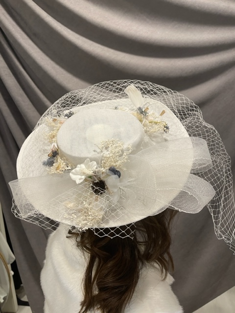 Beyaz Uzun File Detaylı Kır Çiçekleri İle Süslü Şapka Vualet Nikah Kepi