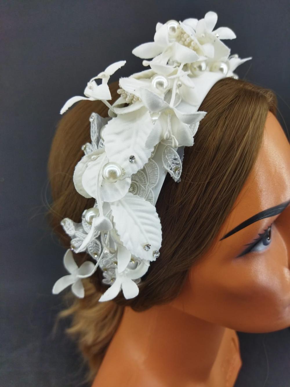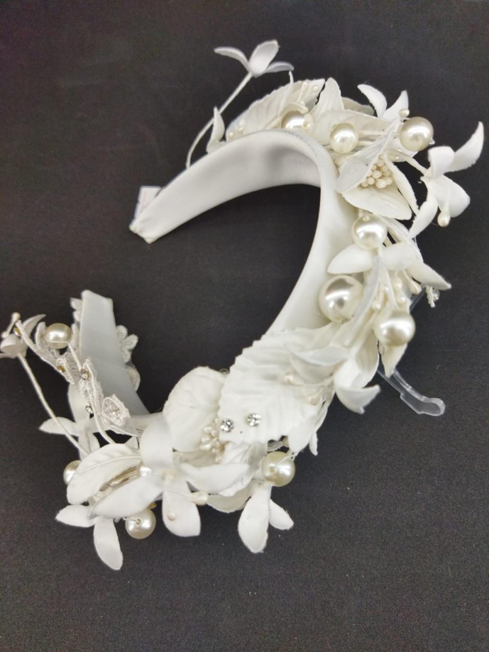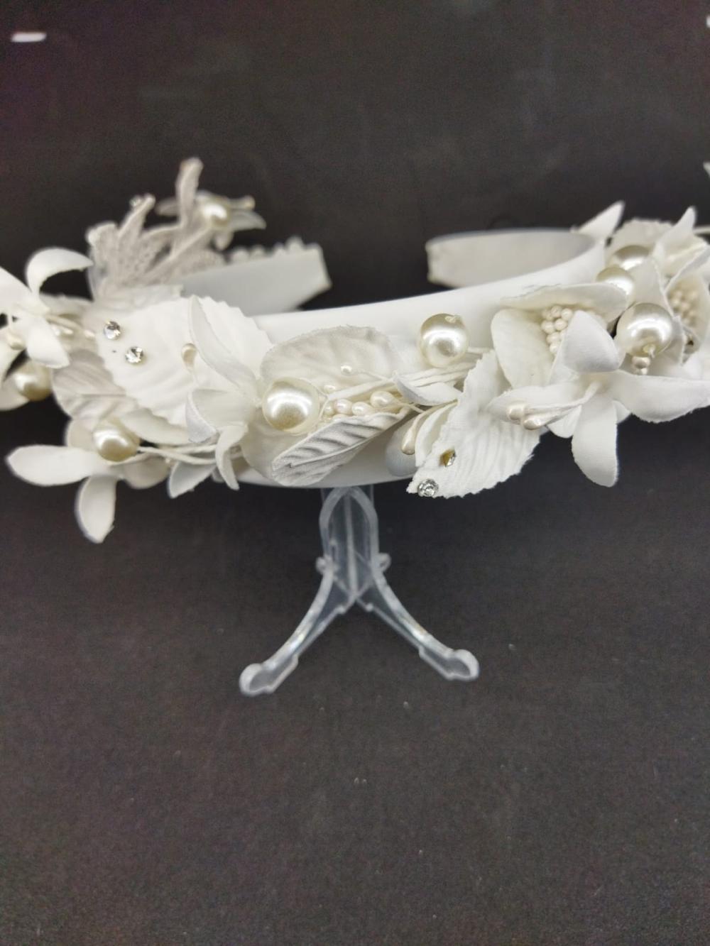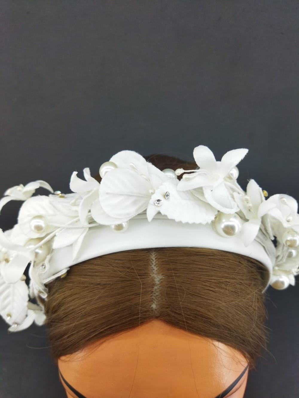 Beyaz Yaprak Ve İncilerle Süslenmiş Gelin Tacı