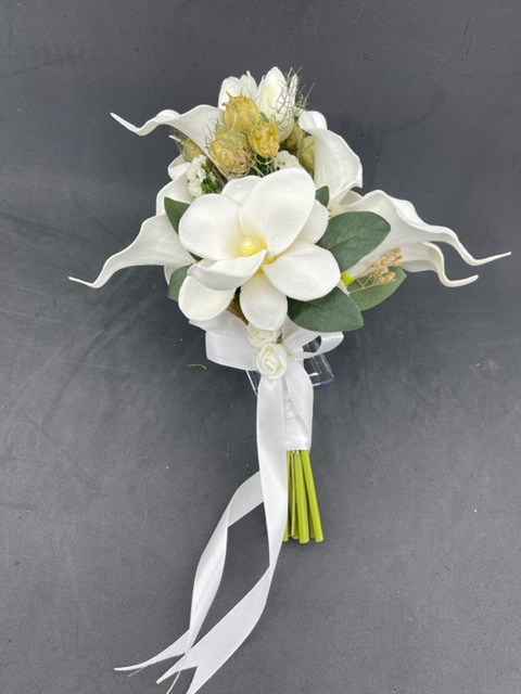 Beyaz Yeşil Yapraklarla Ve Cipsolarla Süslü Kurdeleli Manloya Gül Buketi