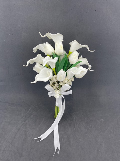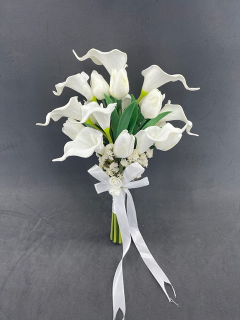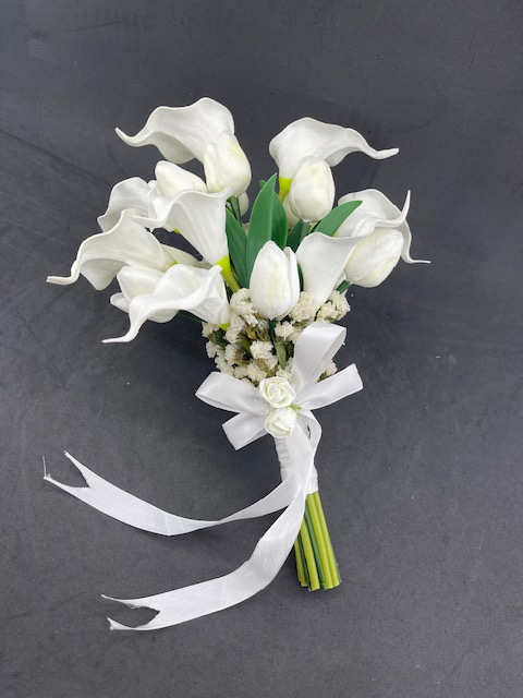 Beyaz Yeşil Yapraklarla ve Tomurcuk Çiçeklerle Süslenmiş Gala Gelin Çiçeği