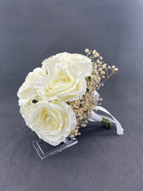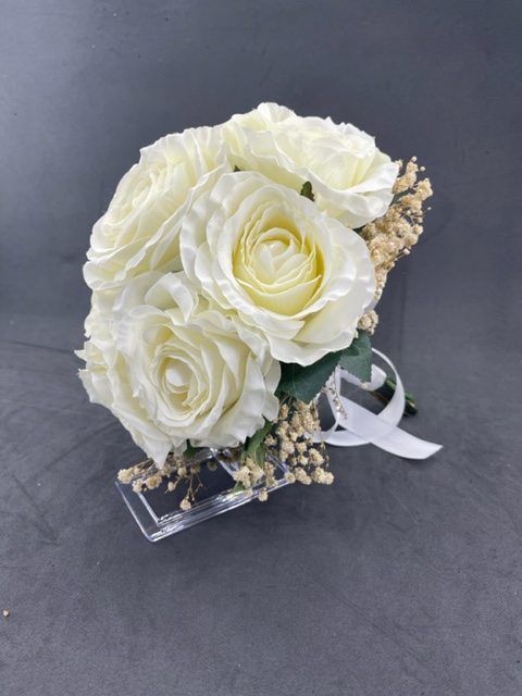 Beyaz Yeşil Yapraklarla ve Tomurcuk Cipsolarla Süslenmiş Gül Buketi