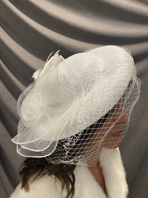 Beyaz Yüz Fileli Gül Detaylı Şık Vualet Şapka Nikah Kepi