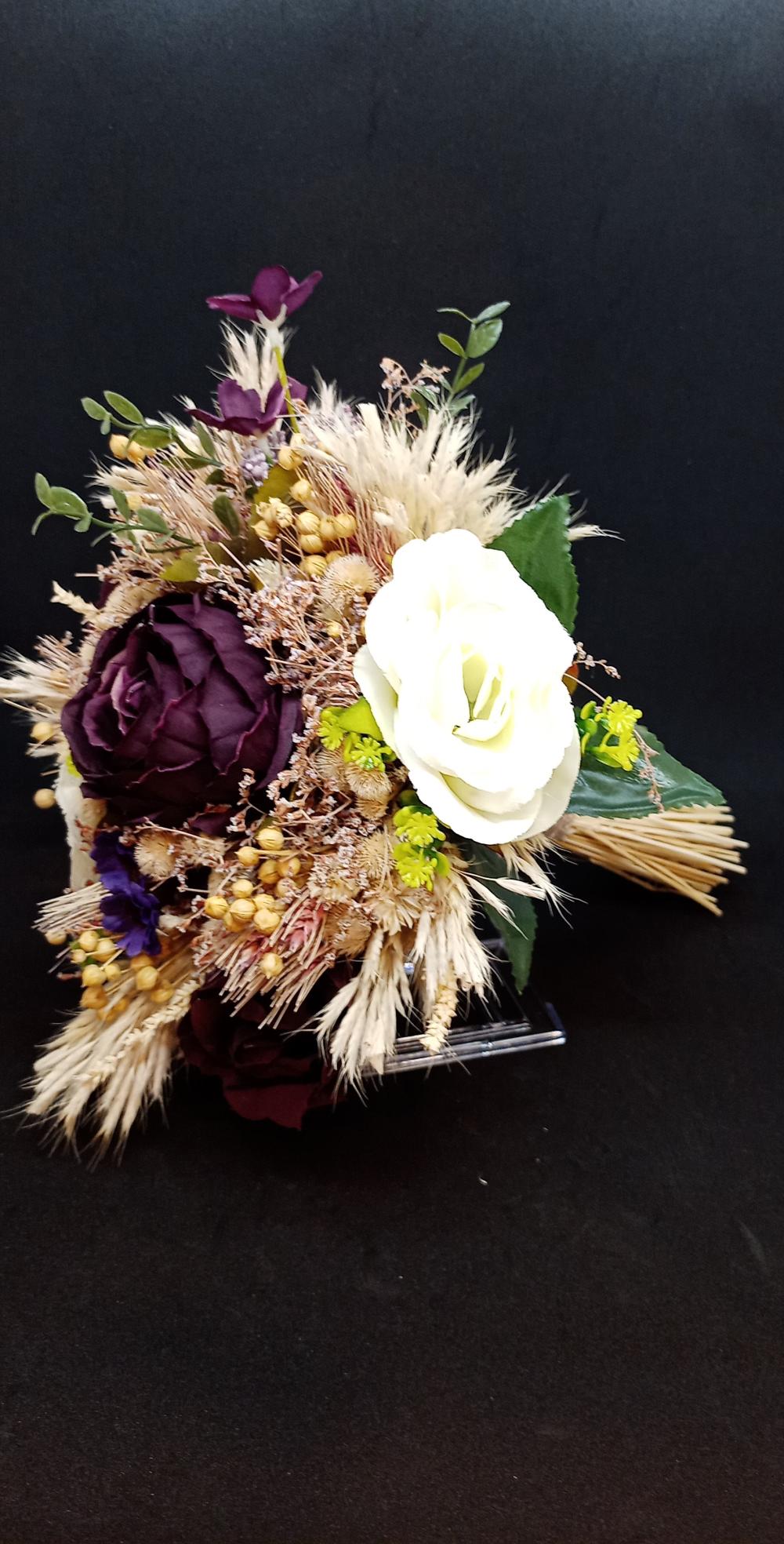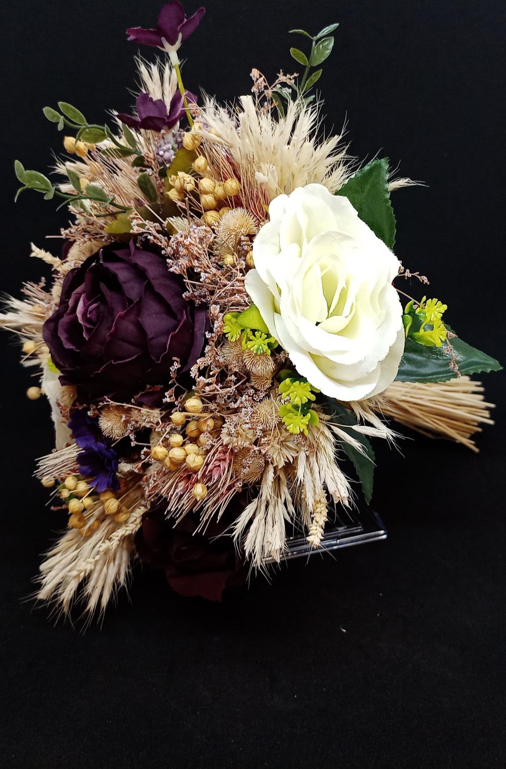 Borda Ve Beyaz Gülden Oluşan Gelin Buketi