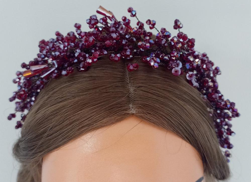 Bordo Kristallerle Süslenmiş Kına Tacı
