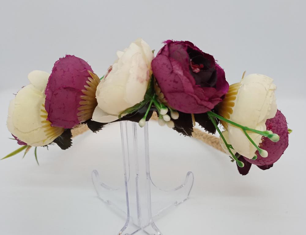 Yapay güllerle oluşturulmuş çiçekli taç.