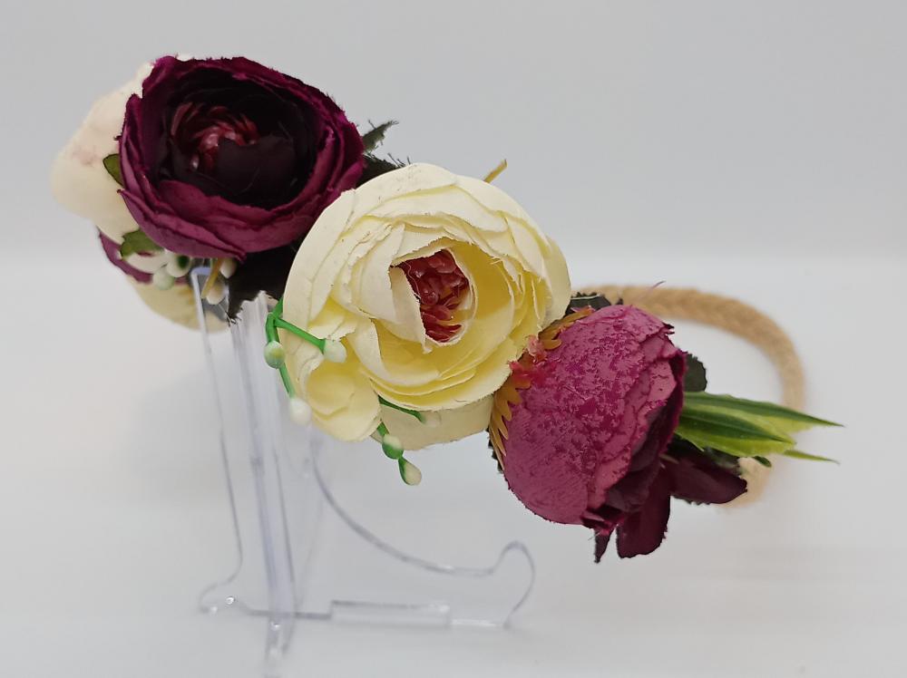 Bordo Ve Sarı Güllerle Oluşturulmuş Çiçekli Taç
