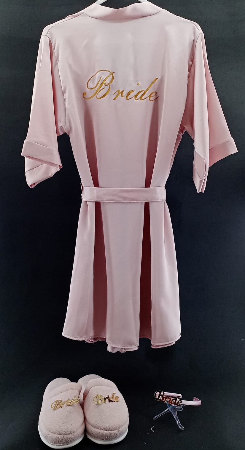 Bride Pembe Model Baskılı Sabahlık / Gecelik Taç Terlik Seti