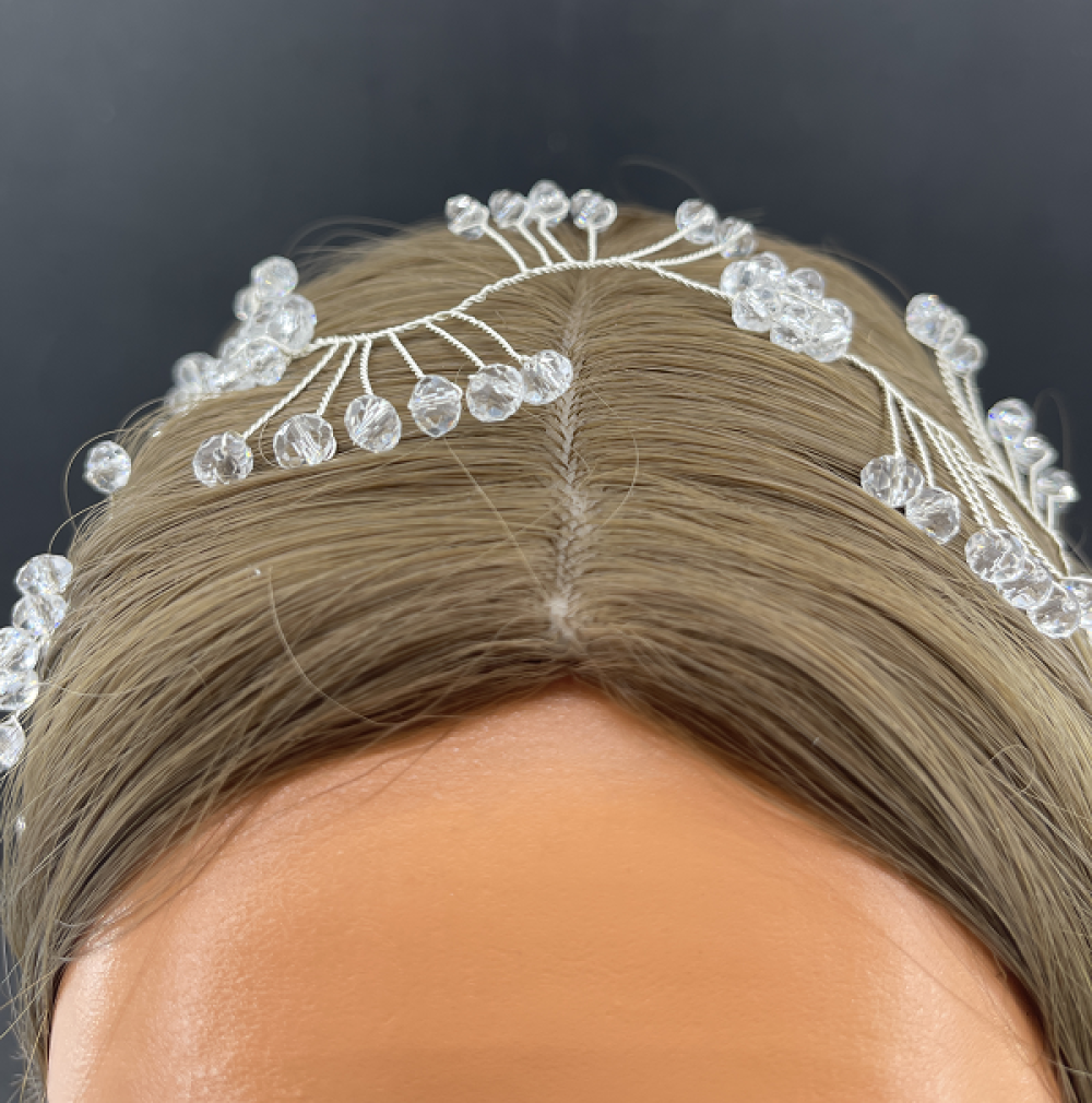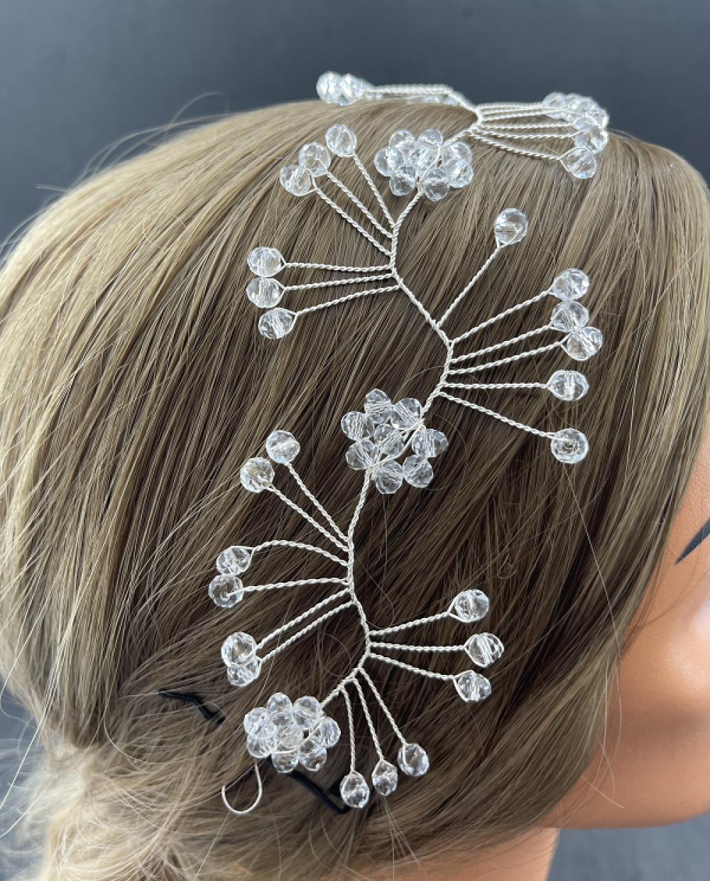Çiçek Desenli Kristallerden Oluşan Gelin Tacı