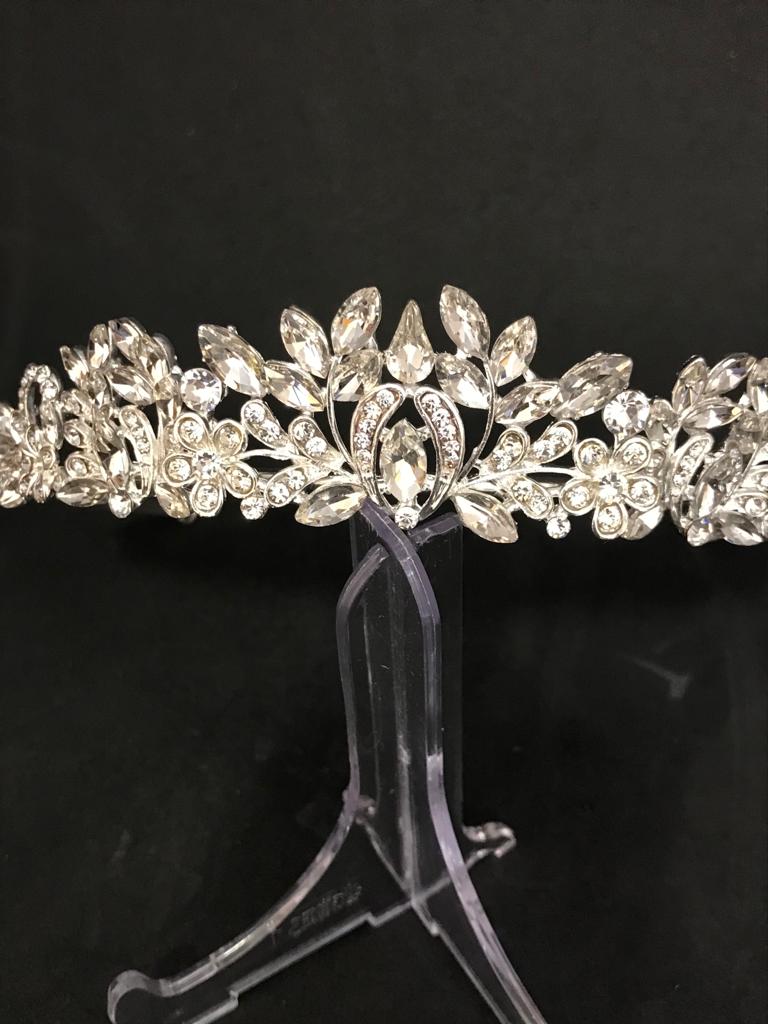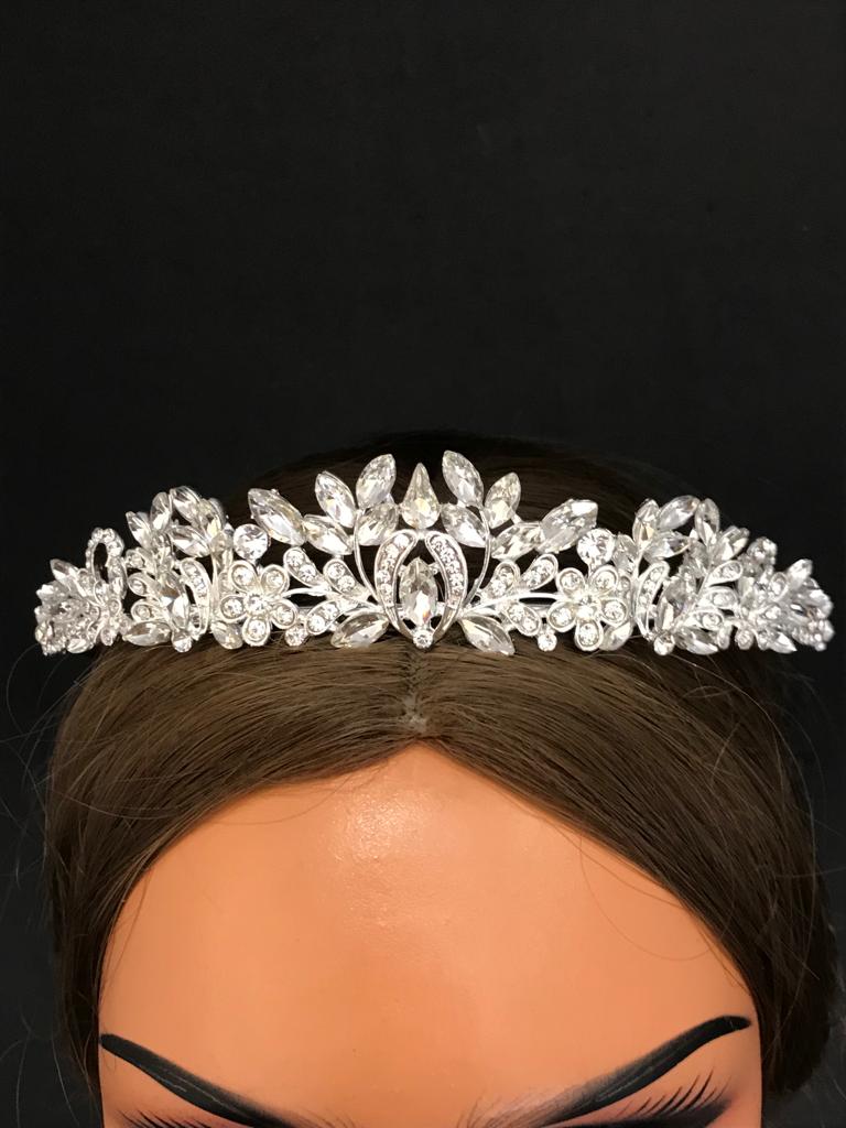 Çiçek Detaylı Taş İşlemeli Prenses Gelin Tacı