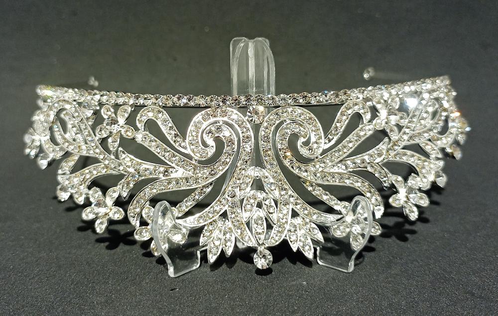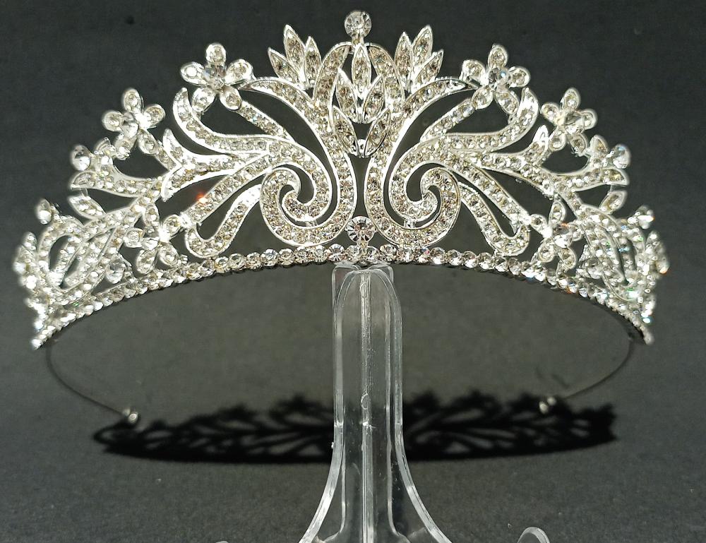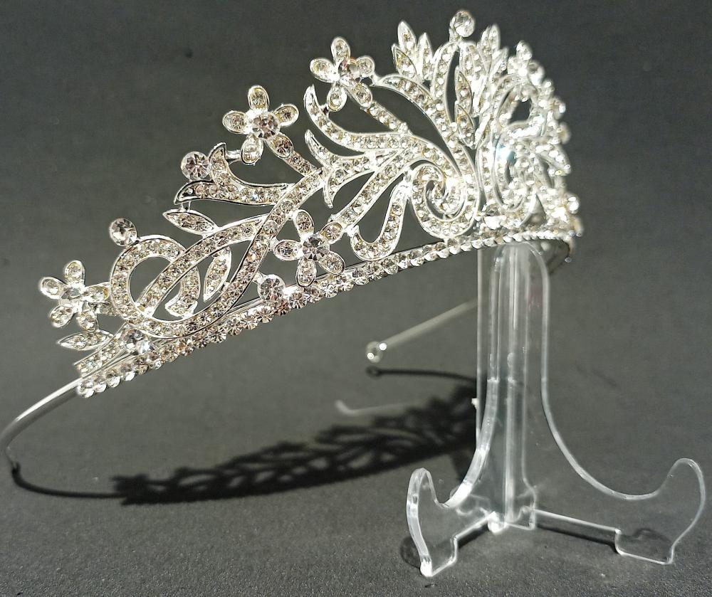 Çiçek Şekli Detaylarına Sahip Zarif Kristal Model Gelin Tacı
