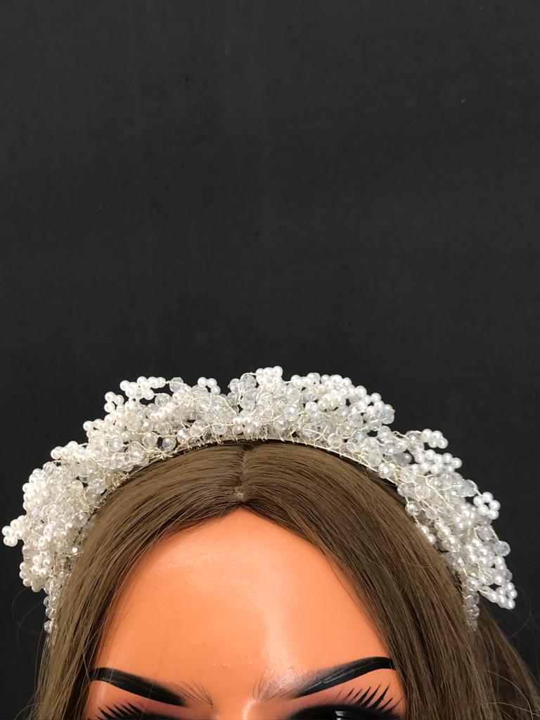 Çiçek Şeklinde İncilerden Ve Kristal Taşlardan Oluşan Gelin Tacı