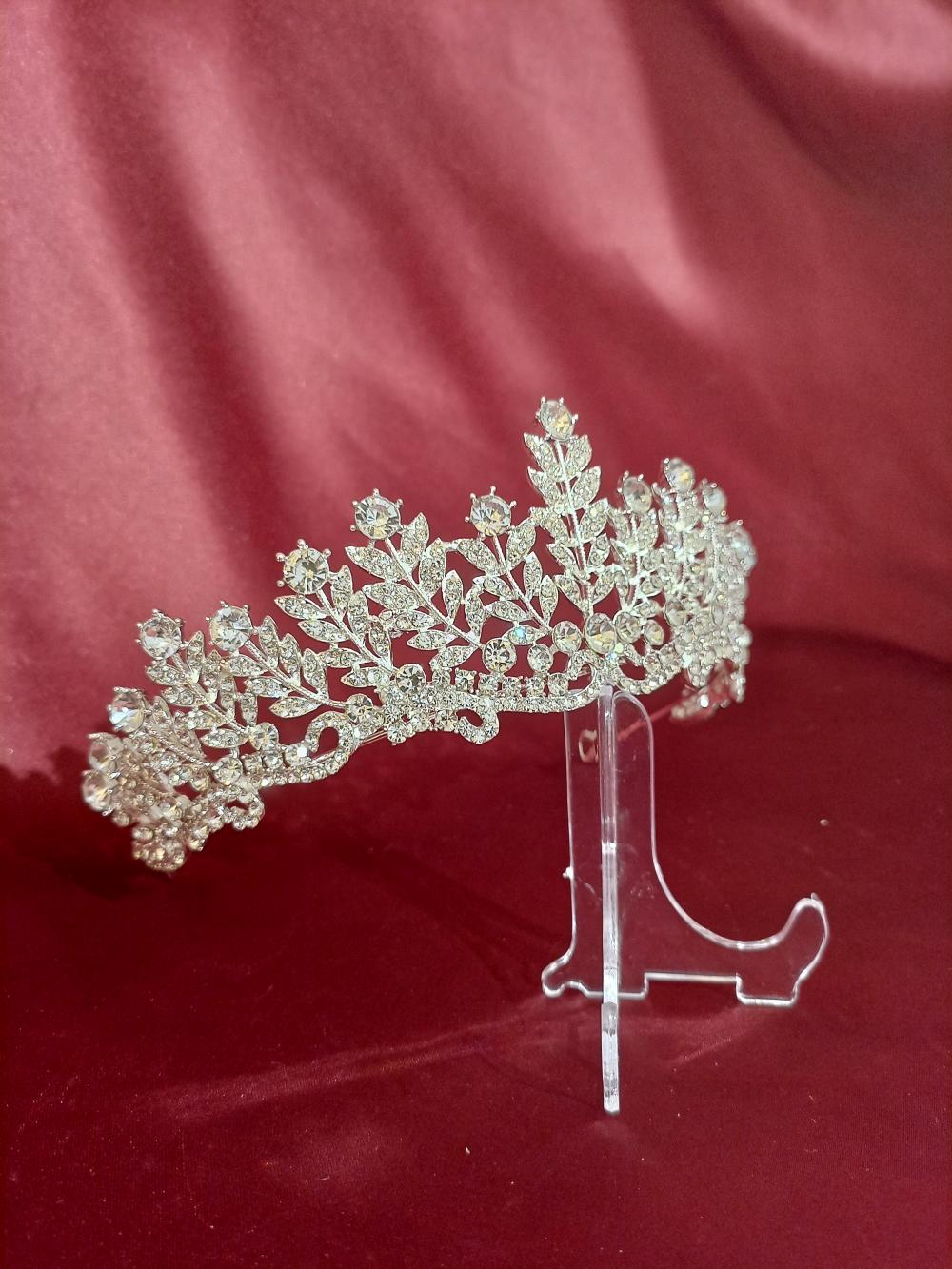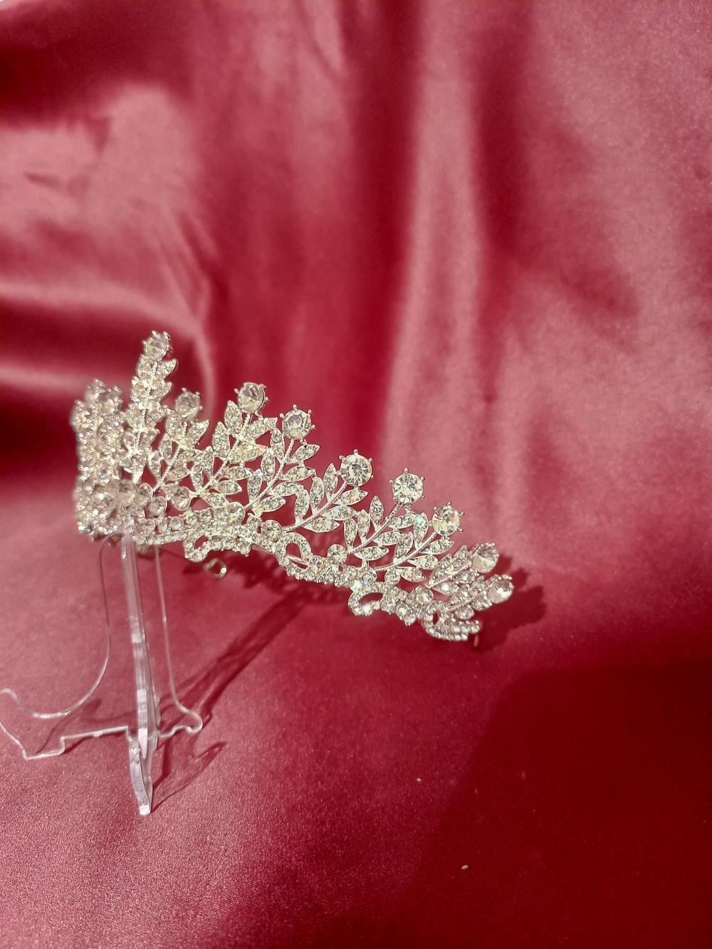 Çiçek ve Yaprak Formunda Kristal Taş Gelin Tacı