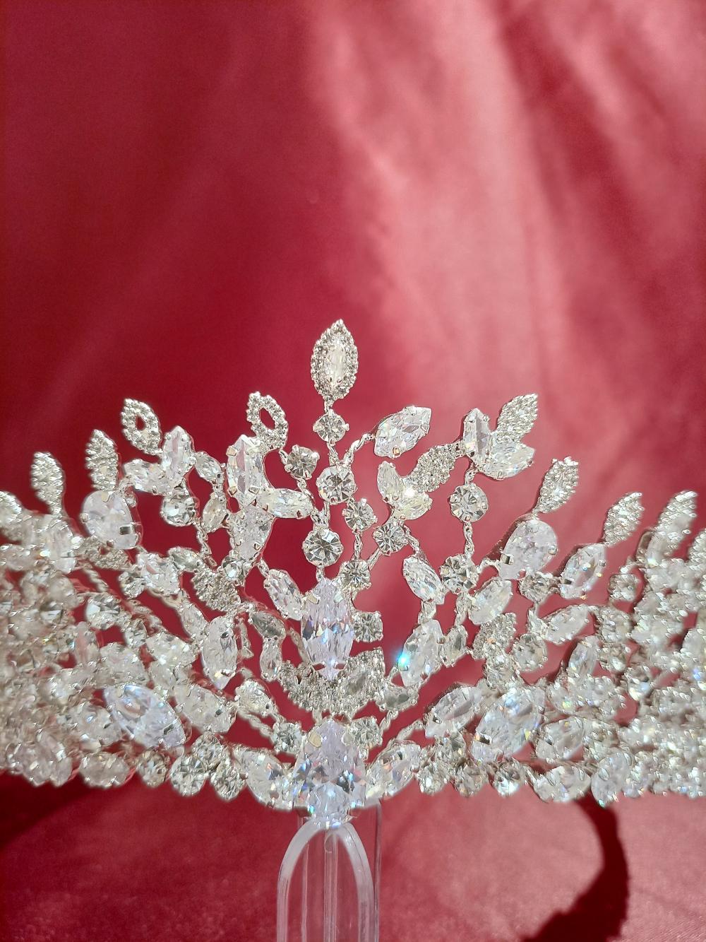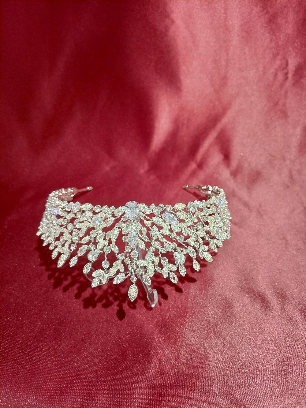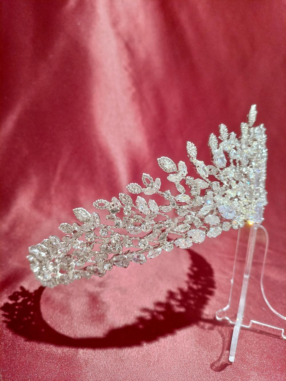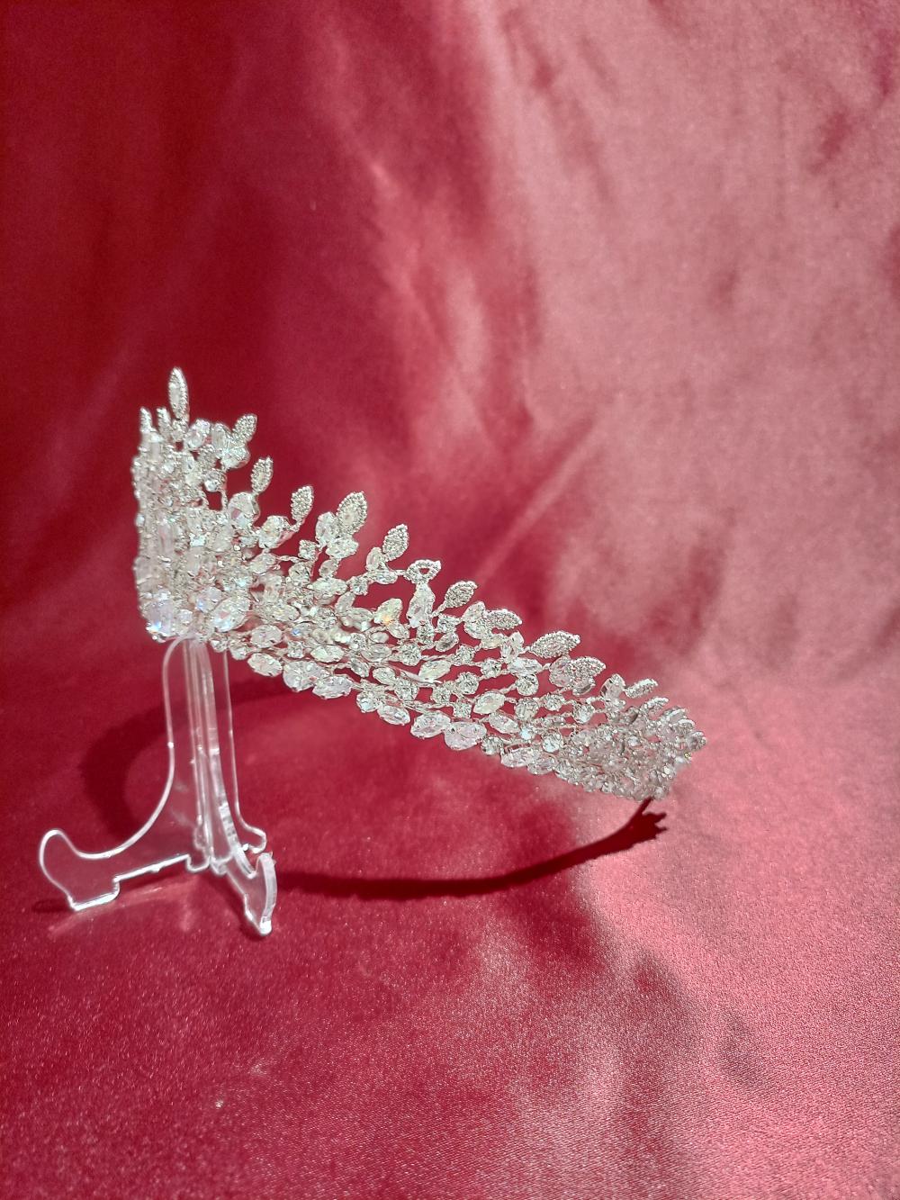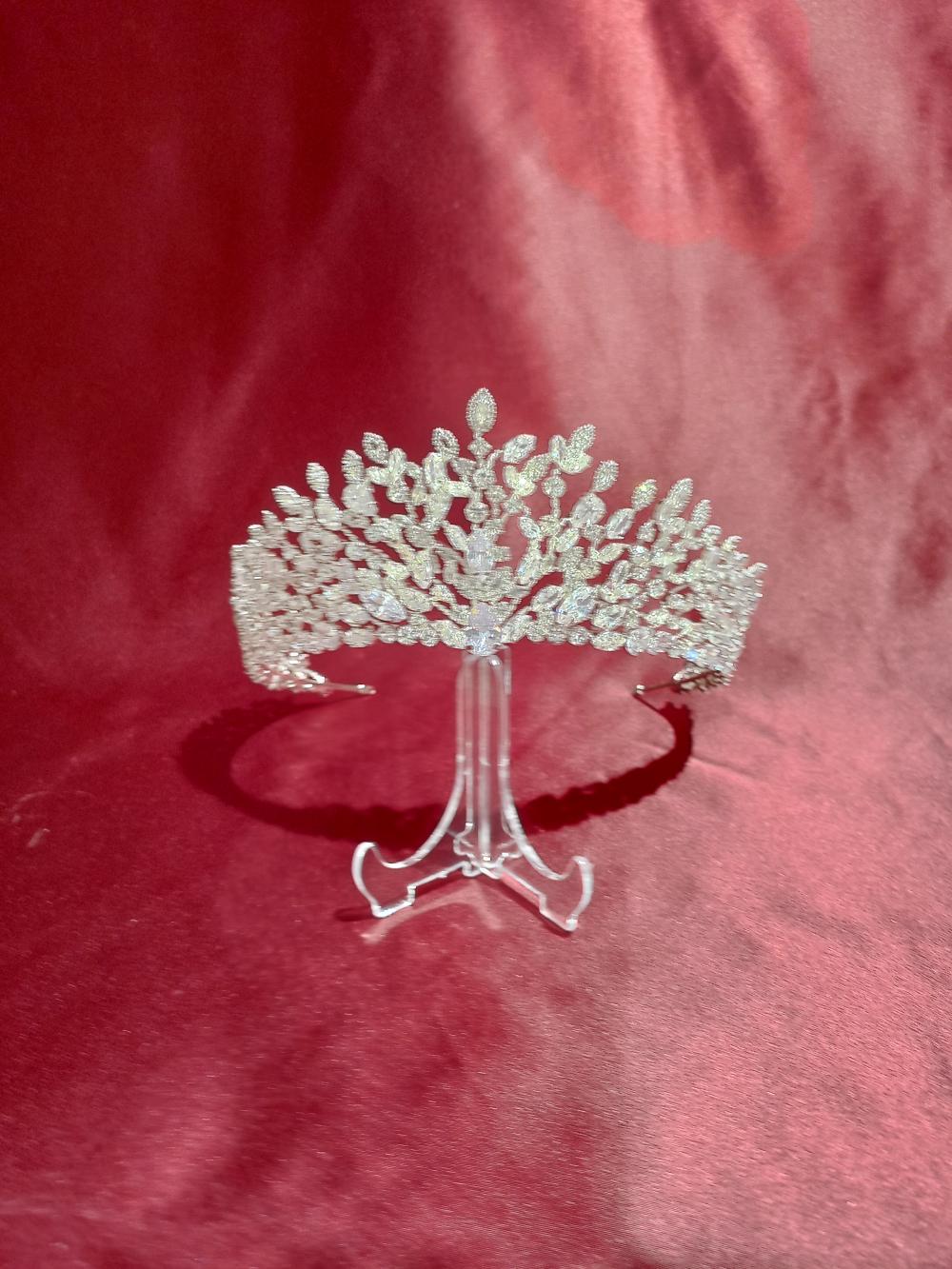Yaprak ve Çiçek Desenlere Sahip Tamamı Zirkon Taş Prenses Model Gelin Tacı.